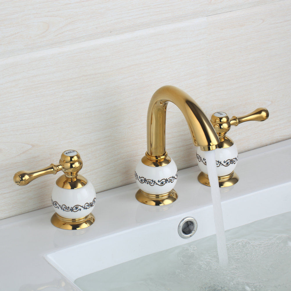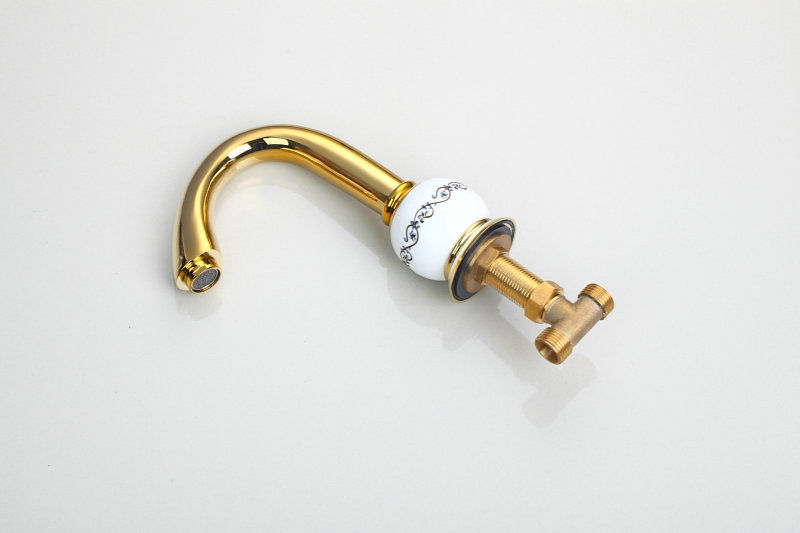 Verleihen Sie Ihrem Badezimmer mit dieser exklusiven goldfarbenen Armatur mit elegantem weißen Keramiksockel einen edlen Look. Diese Armatur vereint zeitloses Design mit hochwertigen Materialien und eignet sich sowohl für Waschbecken als auch für Badewannenränder.