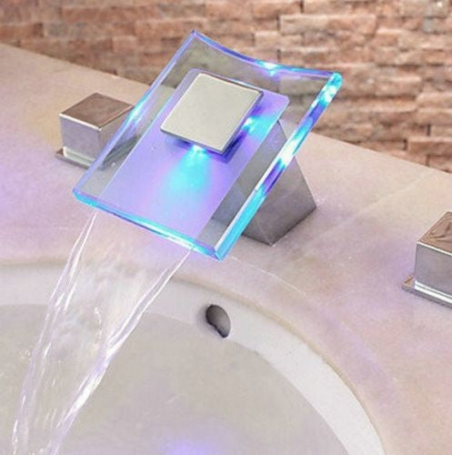 3-teilige LED-Chrom-Wannenarmatur zur Montage am Wannenrand