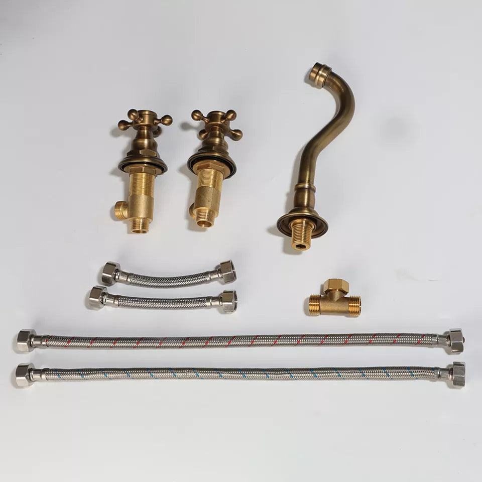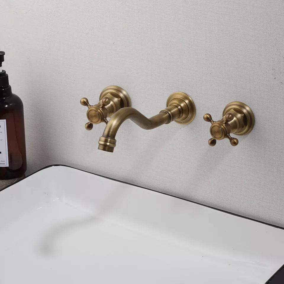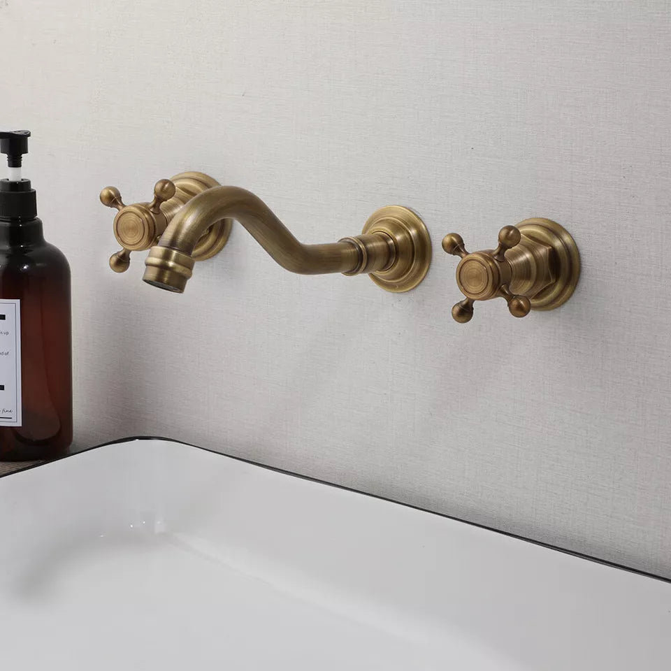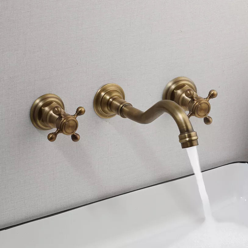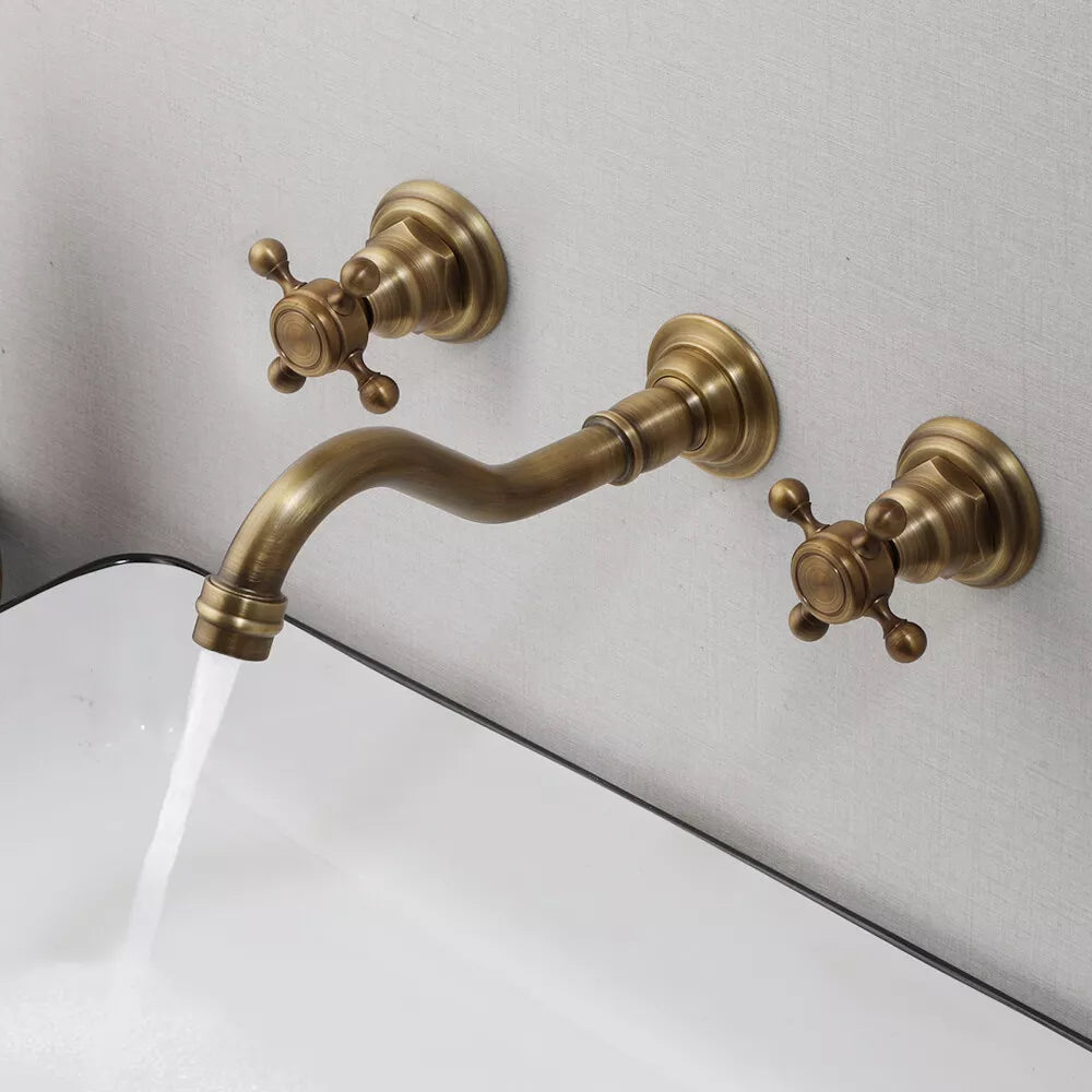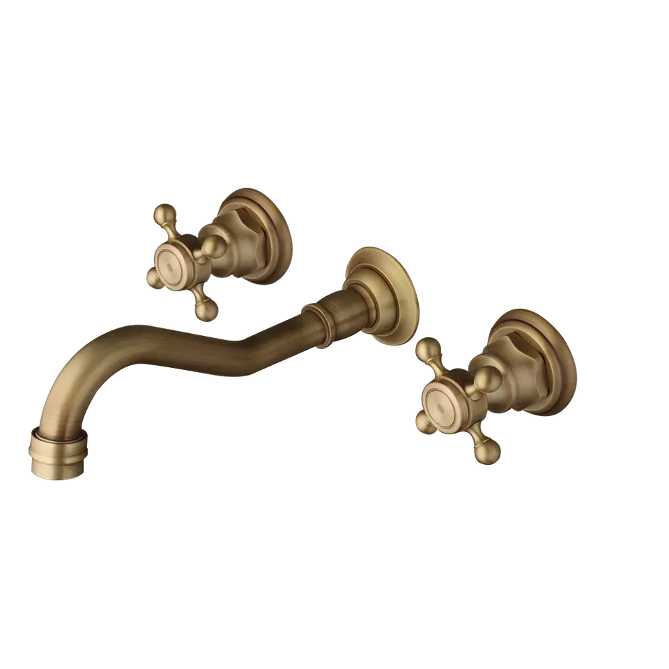 Nostalgische 3-teilige Waschtischarmatur mit Bronze-Finish (Wandmontage)