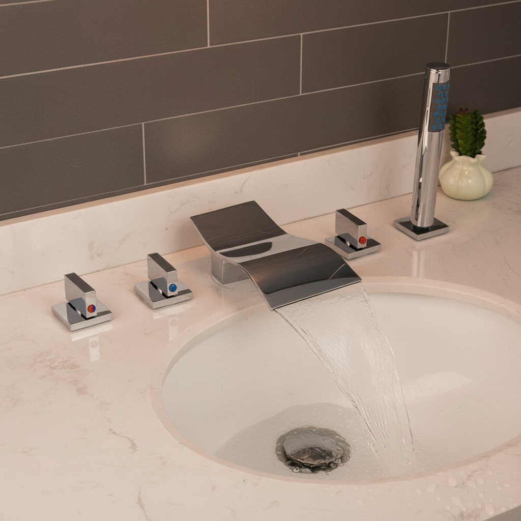- 5-teiliger Chrom-Wasserhahn zur Montage am Badewannenrand