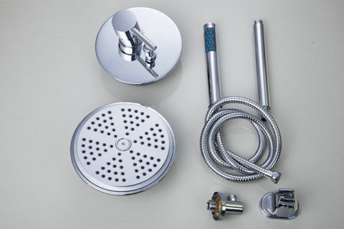 - Chromiertes Einbau-Duschset mit Deckenmontage.