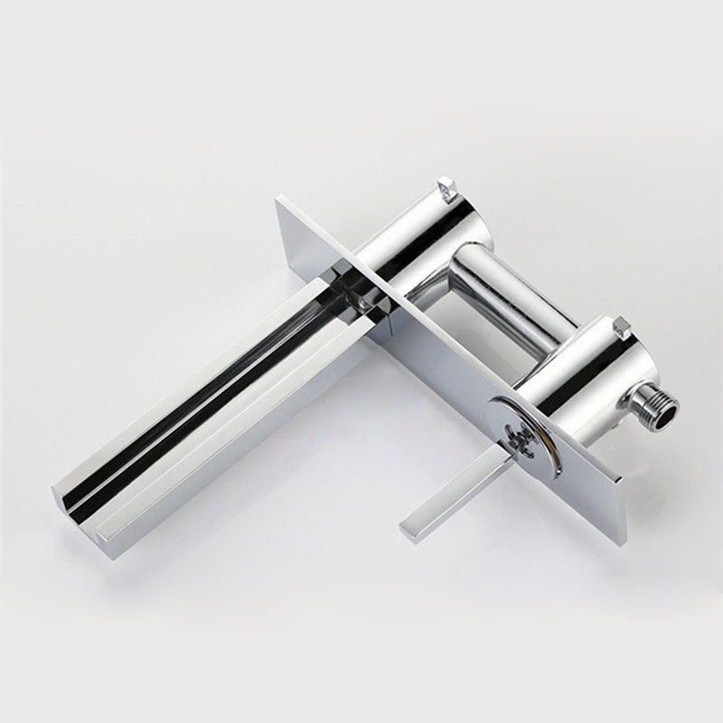 Dies ist ein schlanker, stilvoller Einbauhahn, Mischbatterie für Warm- und Kaltwasser.