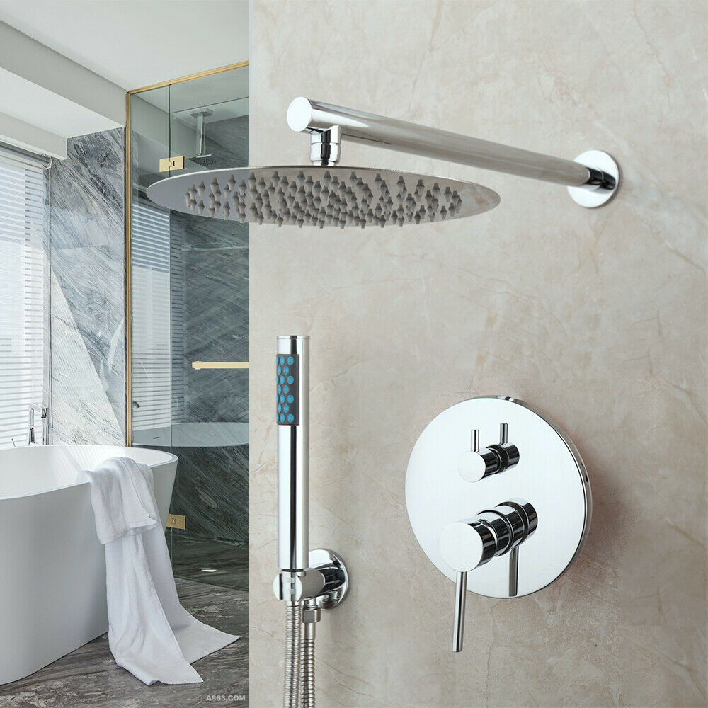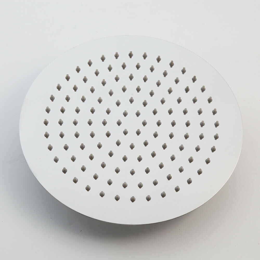Verchromte eingebaute Regendusche mit rundem 20-cm-Duschkopf.