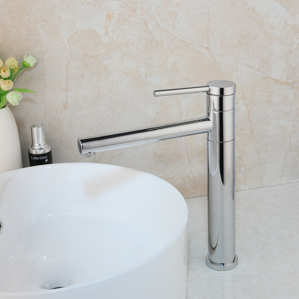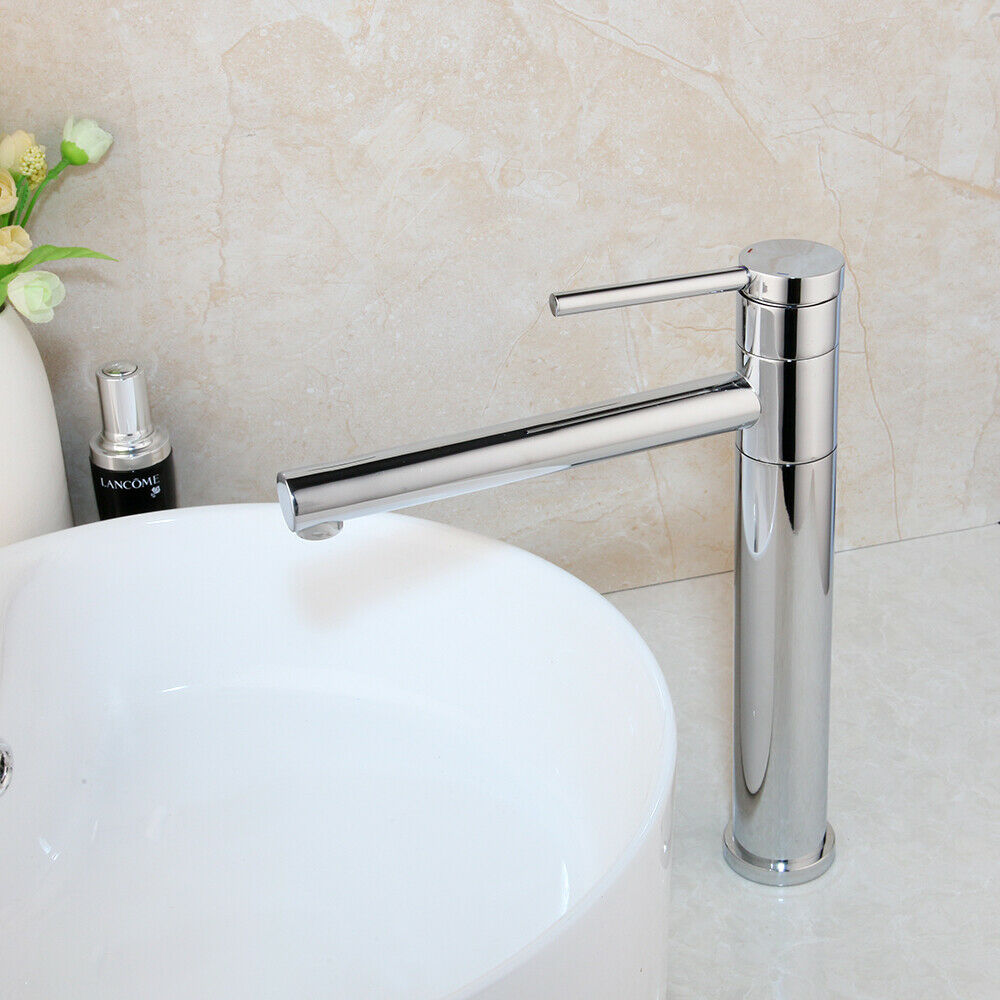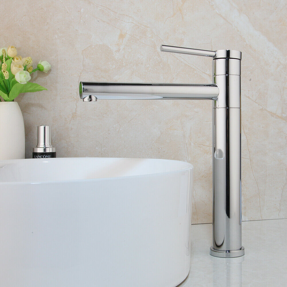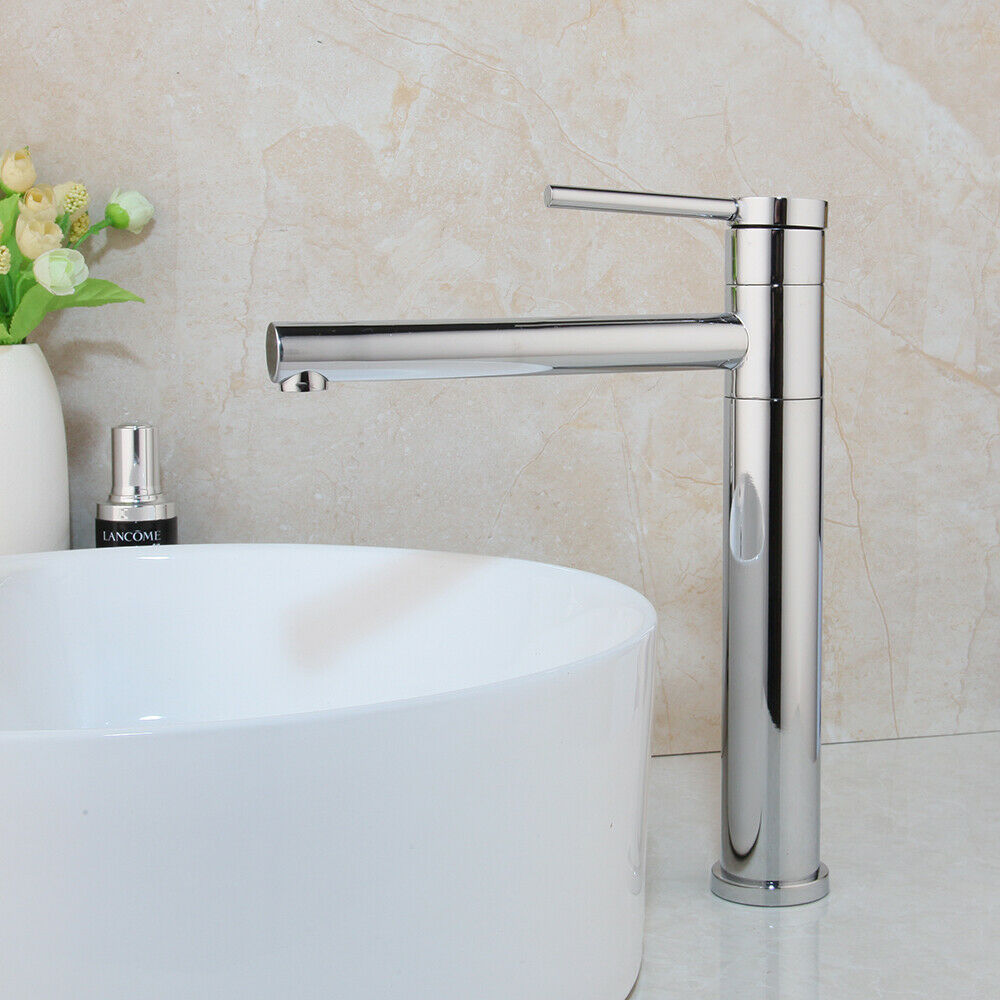 Diese verchromte Waschtischarmatur ist für ein Aufsatzwaschbecken geeignet.
