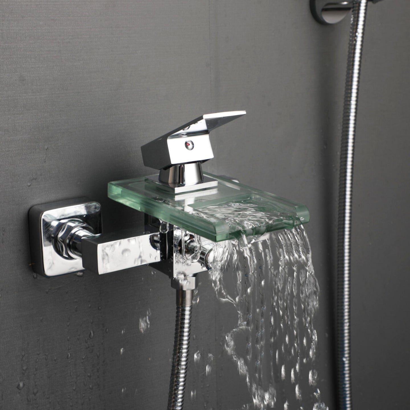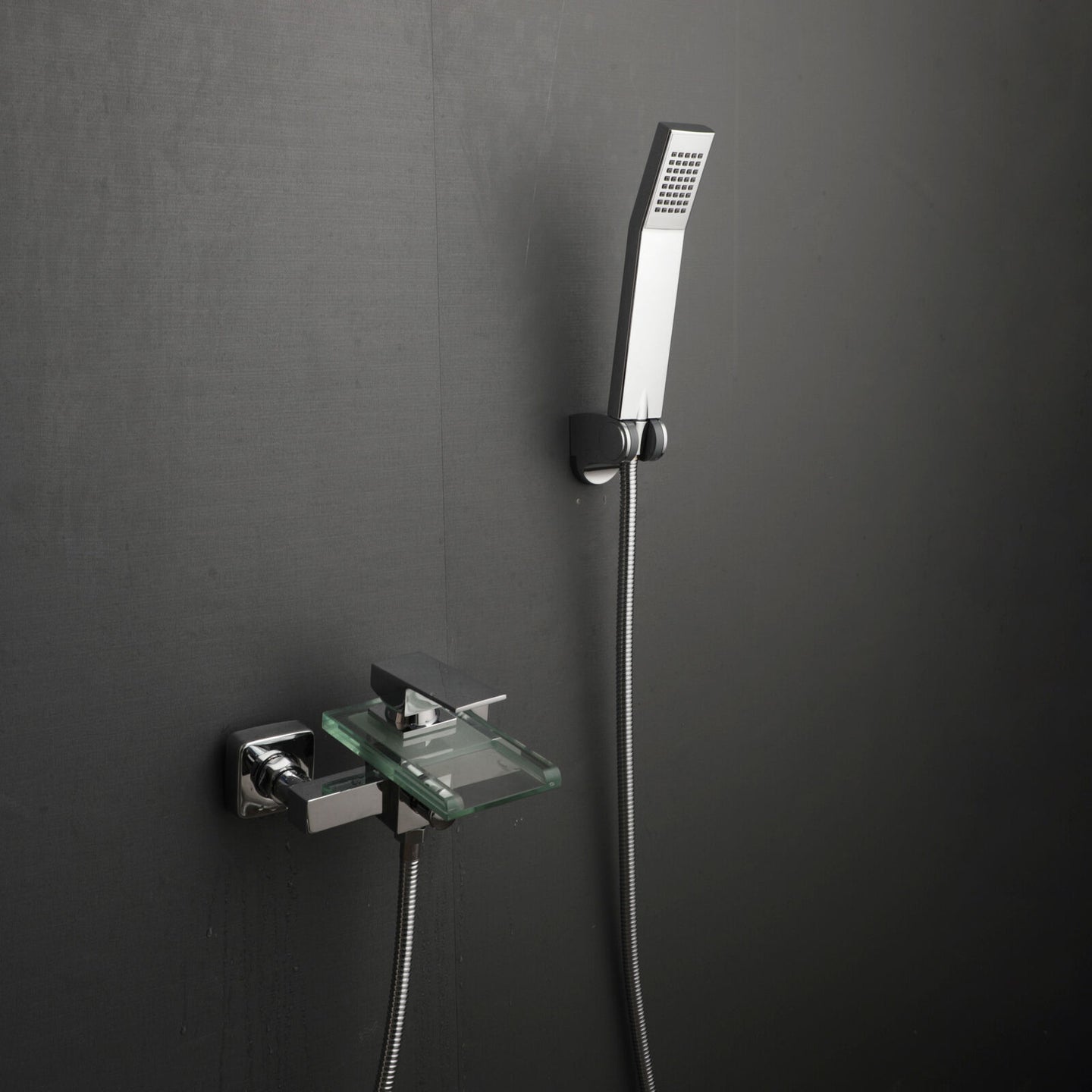 - Chrom-Wasserfall-Badewannen-Mischbatterie mit schöner passender Handbrause