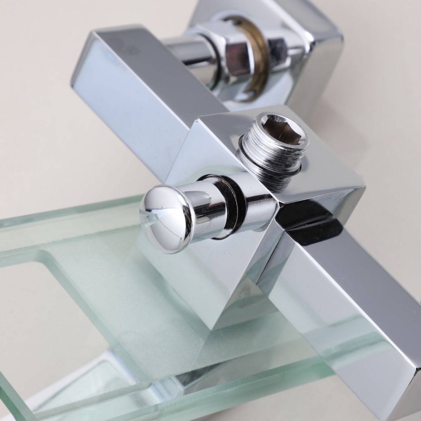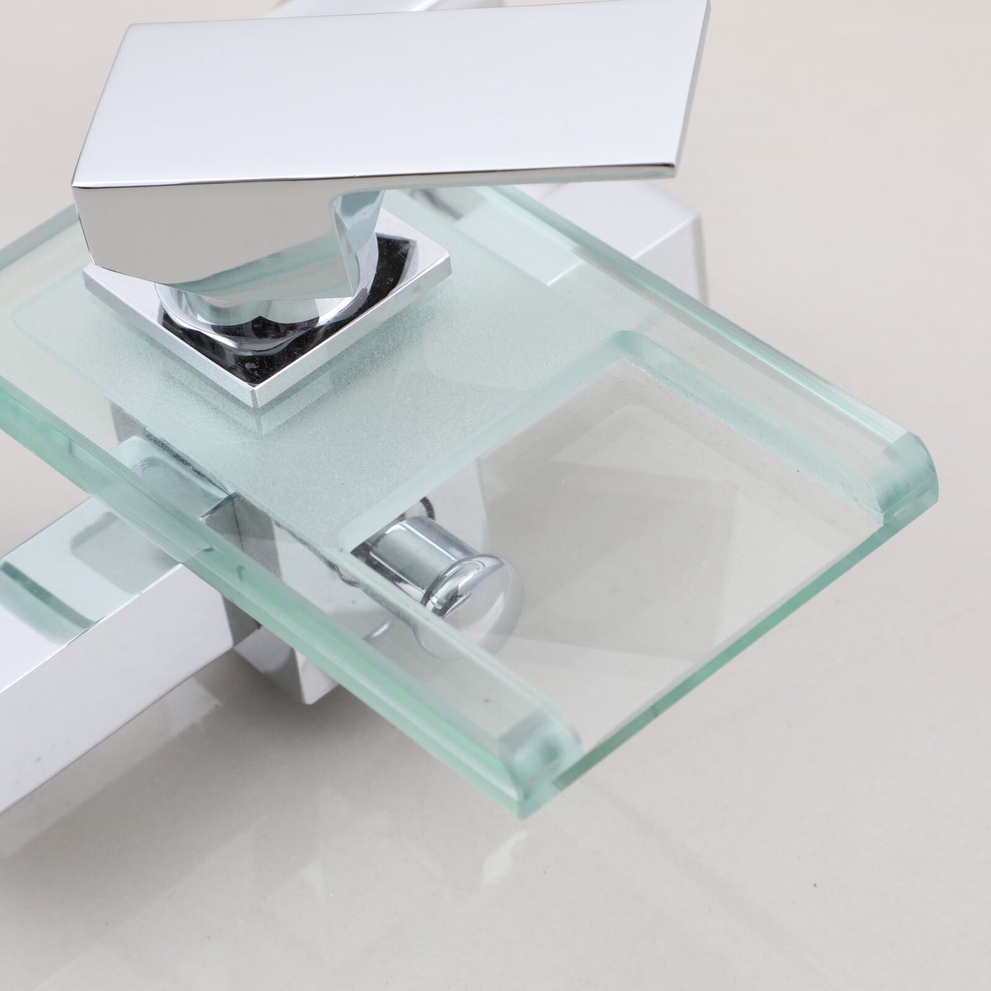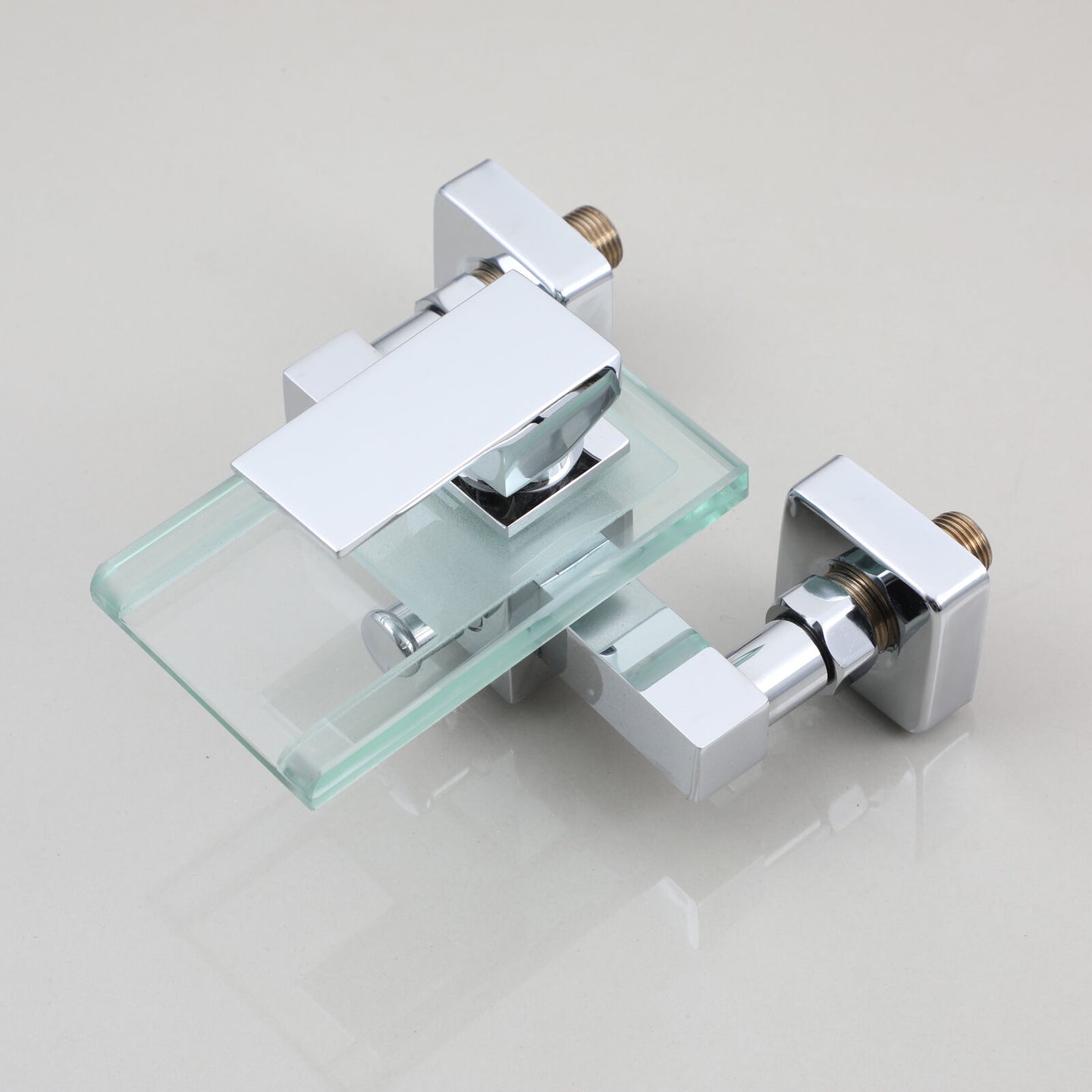 Schöner, schlichter und doch eleganter Badewannenhahn mit Chrom- und Glasoberfläche: