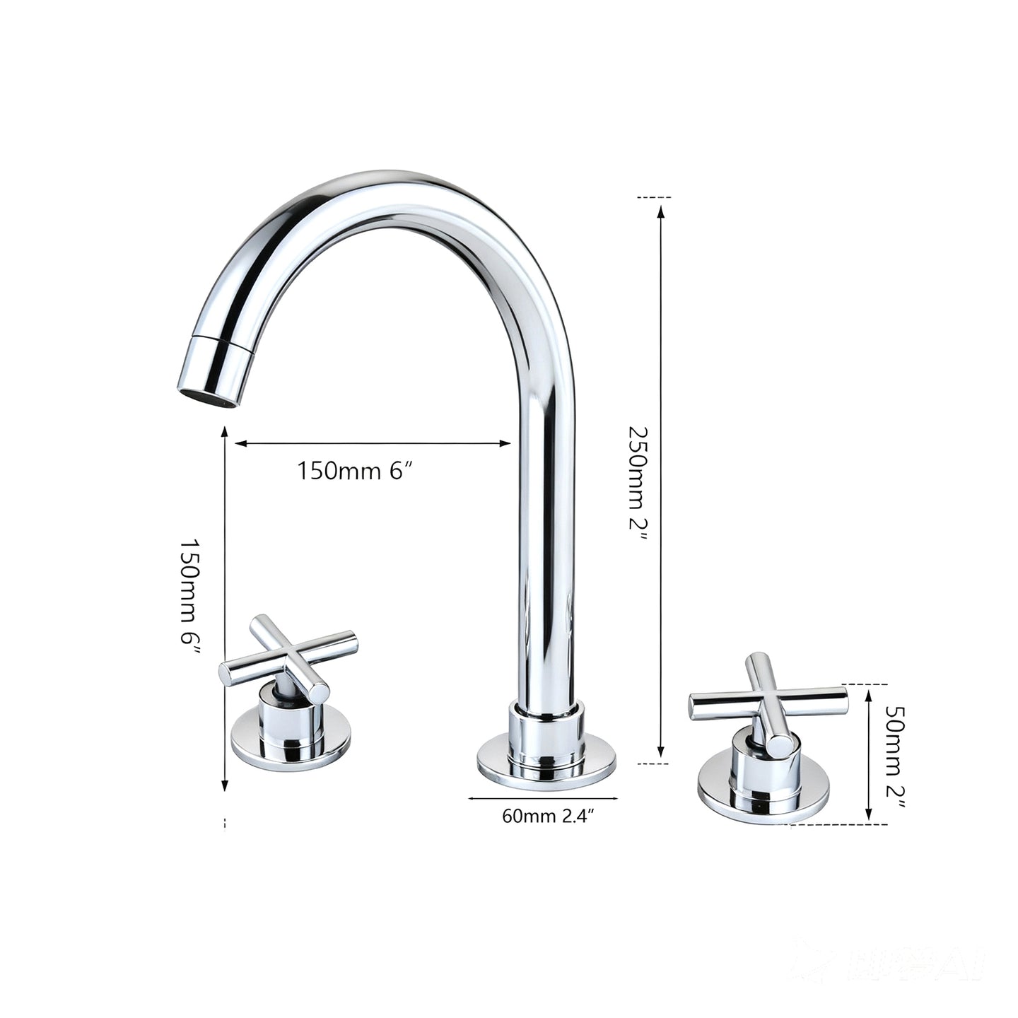 Spezifikationen der 3-teiligen Chrom-Waschtischarmatur: