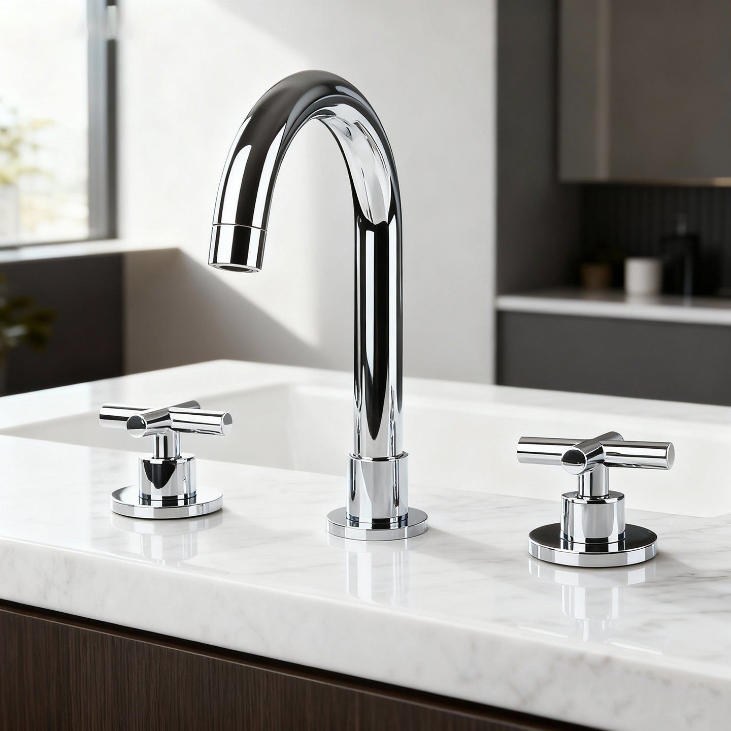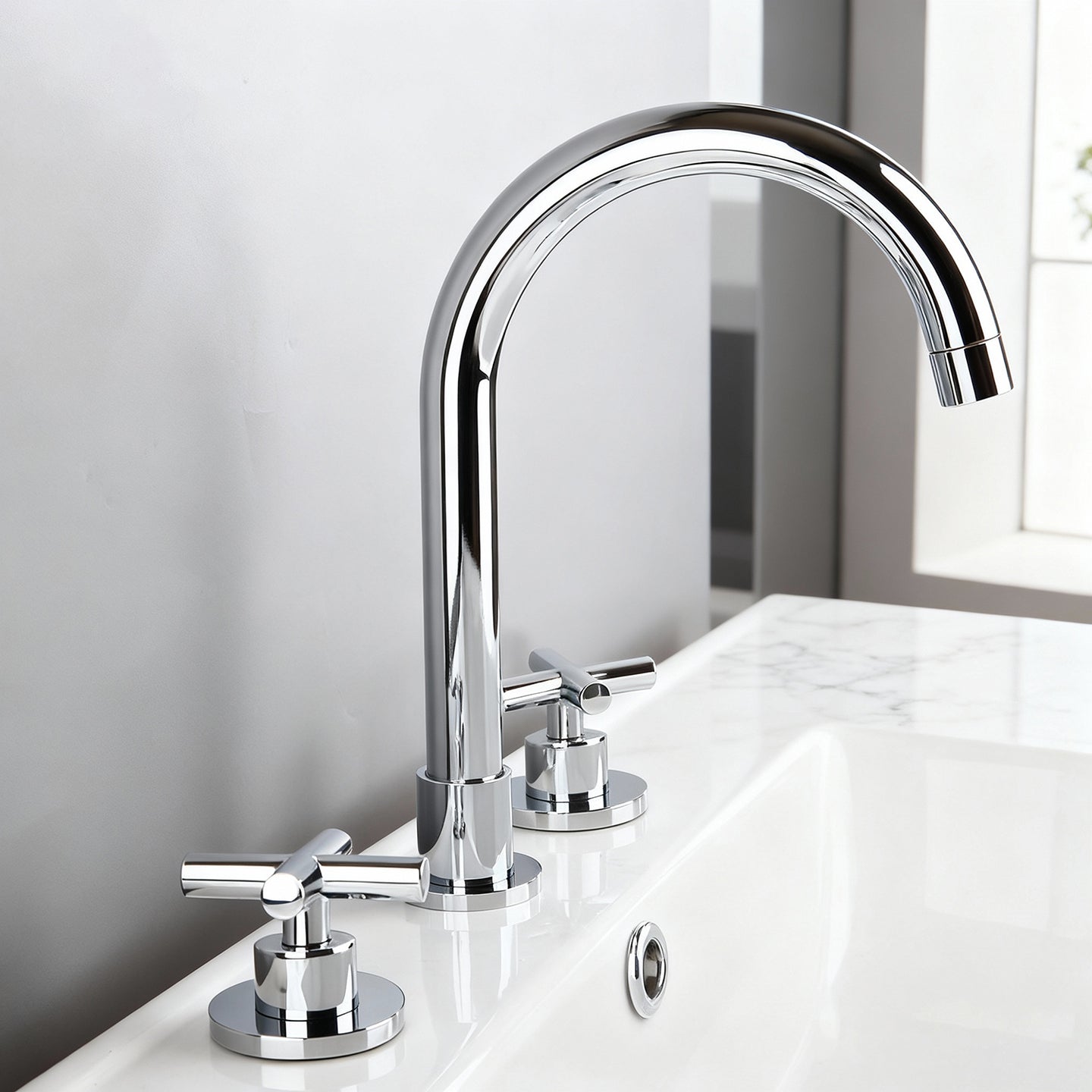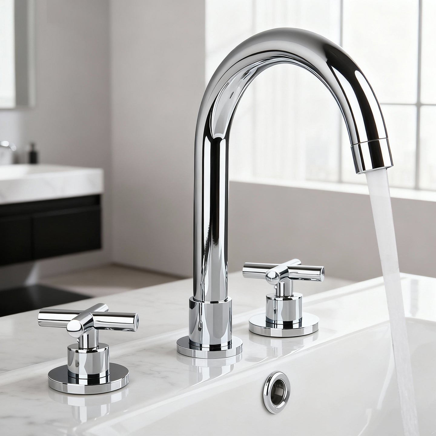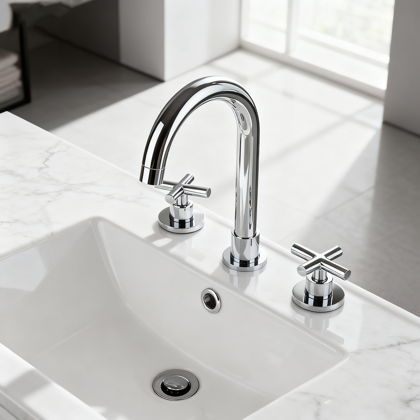 Diese dreiteilige Waschtischarmatur verleiht Ihrem Badezimmer einen besonders luxuriösen Look.