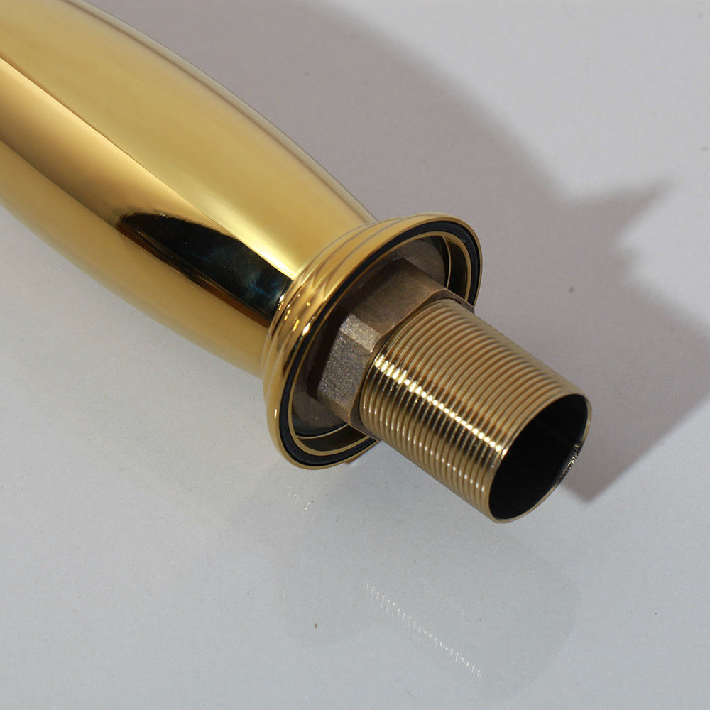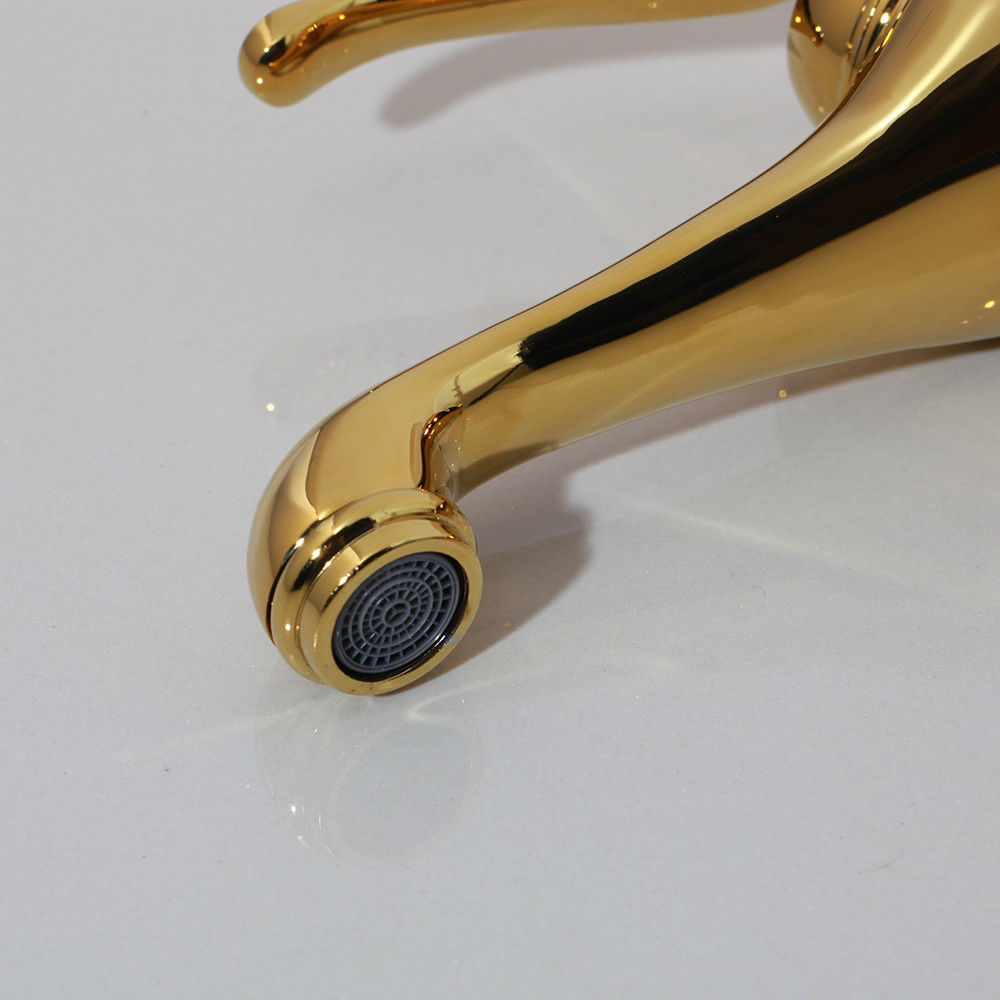 Der Wasserhahn ist aus massivem Messing gefertigt und mit einem hochwertigen Gold-Finish versehen.