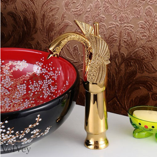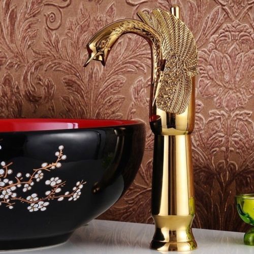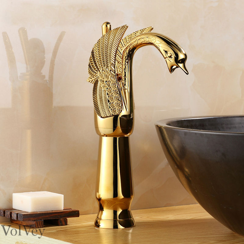 Der goldene Waschbeckenhahn in Schwanenform ist sorgfältig aus massivem Messing gefertigt und mit einem eleganten Goldfinish in Schwanenform versehen.