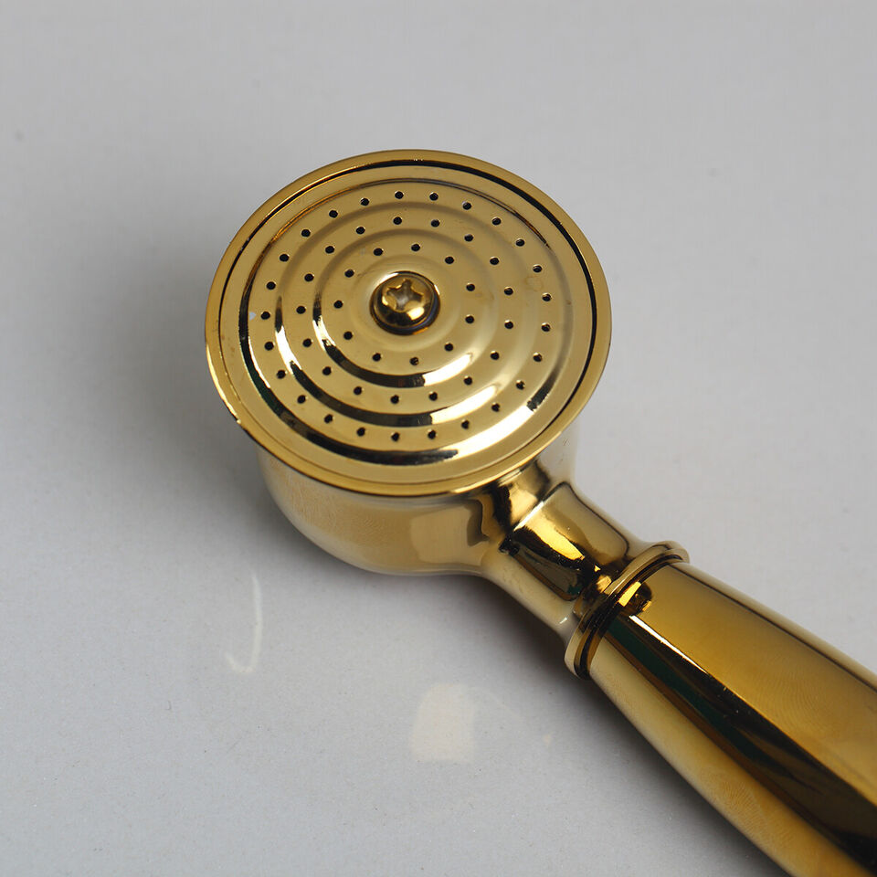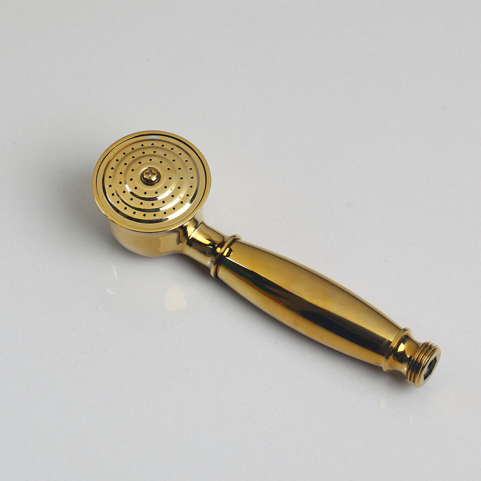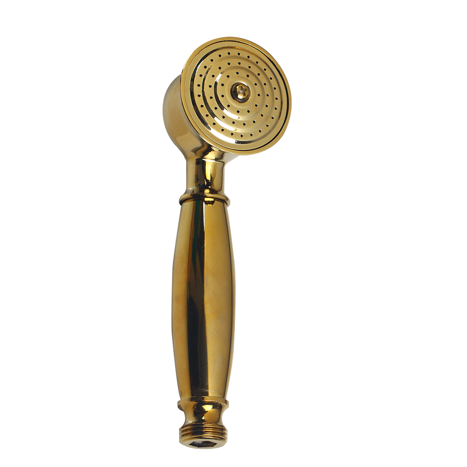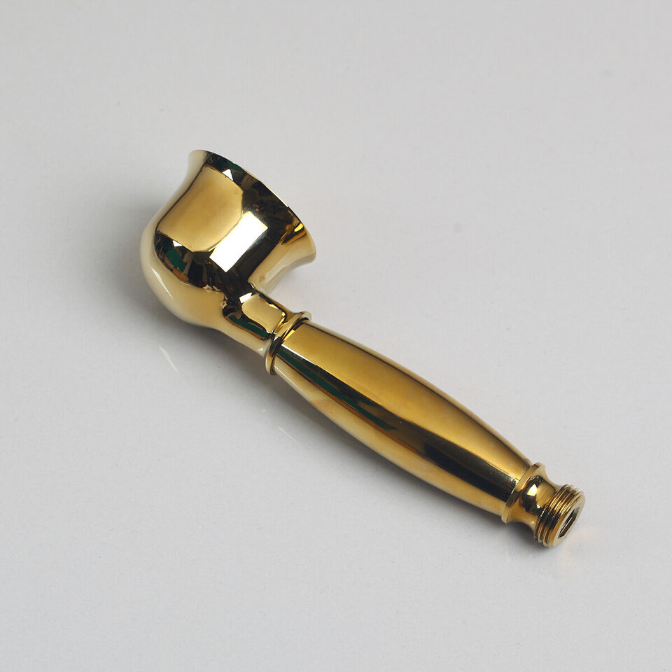 Diese nostalgische goldfarbene Handbrause ist aus Messing gefertigt.