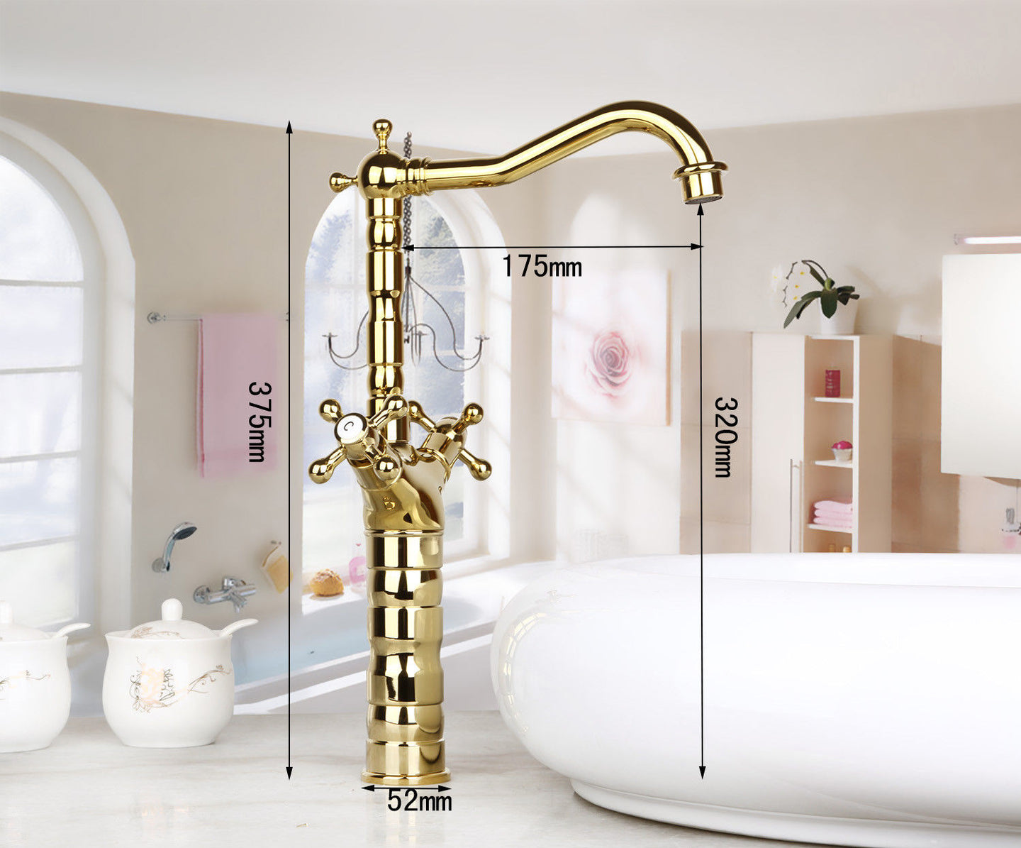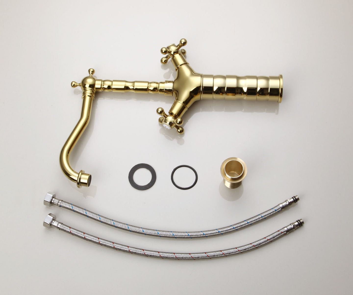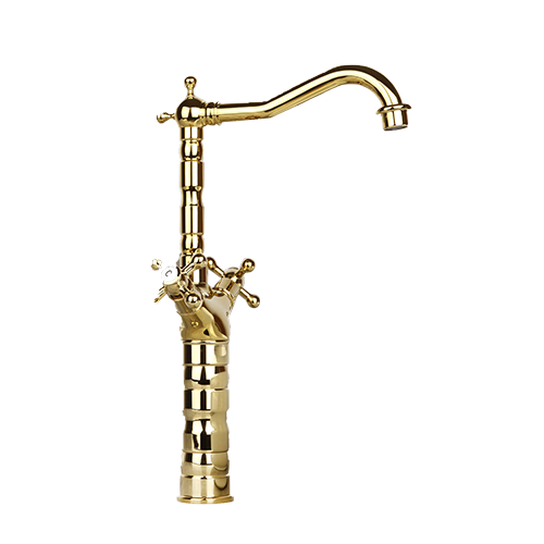 Goldfarbener Waschtischhahn, hohes Modell, Landhausstil.
