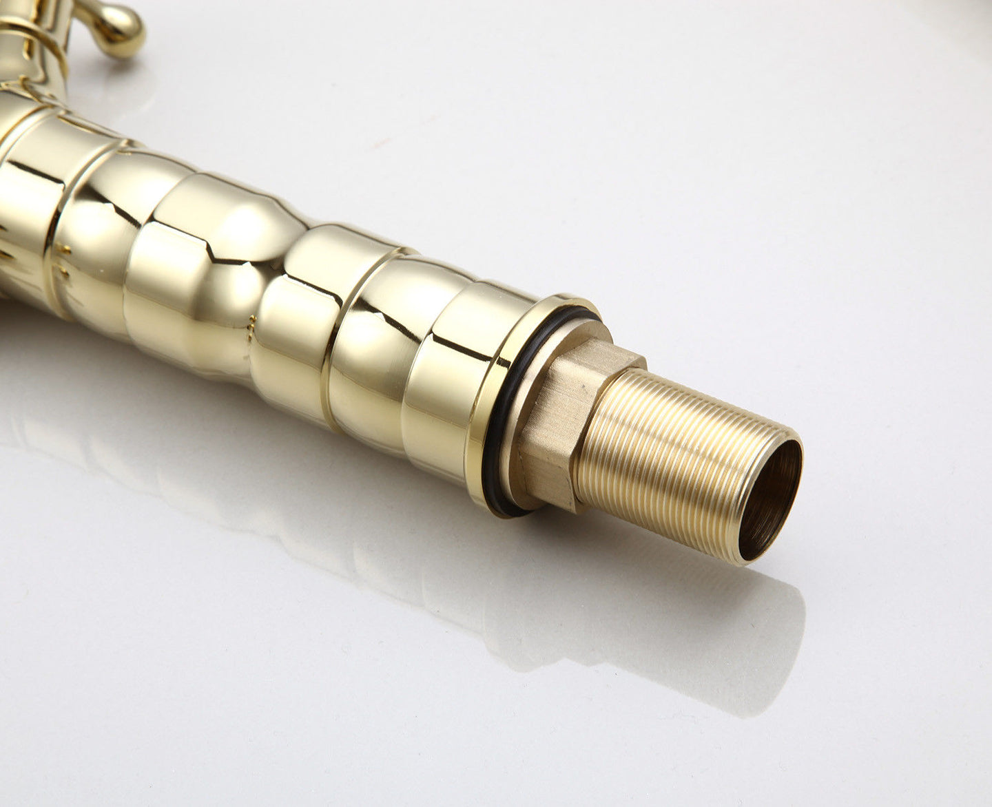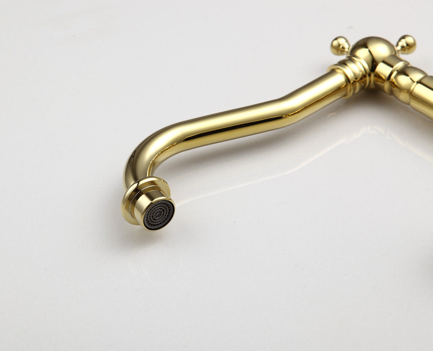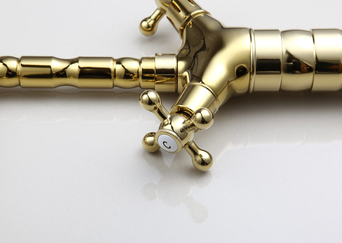Goldene hohe Waschtischarmatur im Landhausstil (auch für Ihre Küche geeignet).