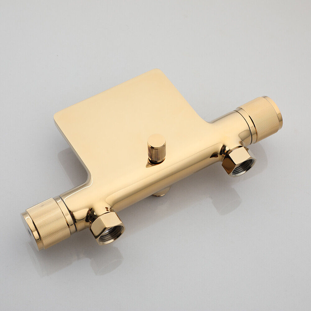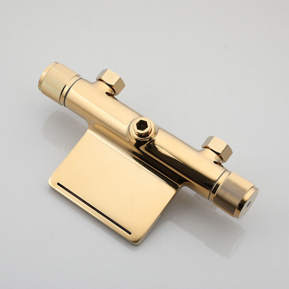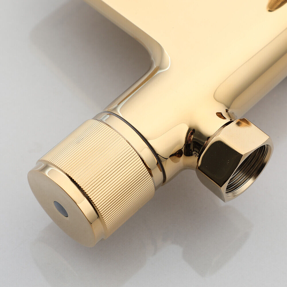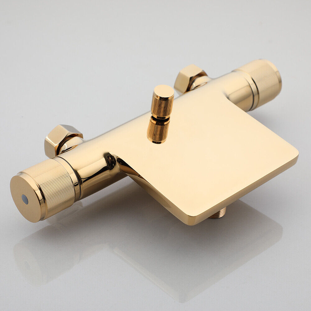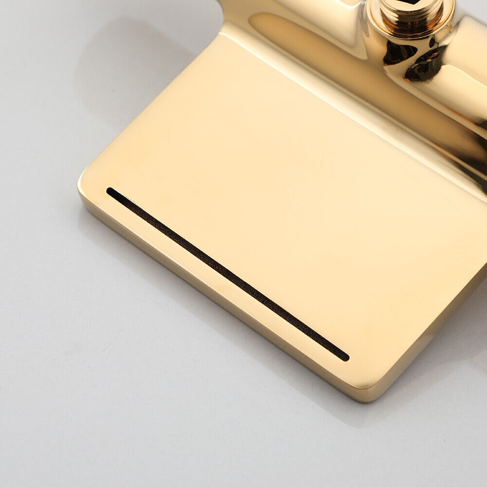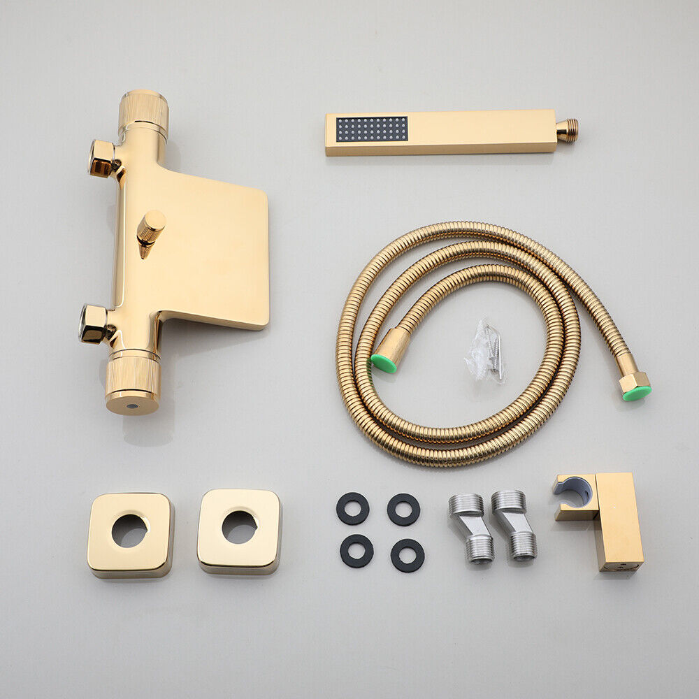 - Inklusive 200 mm rechteckiger, goldfarbener Handbrause.