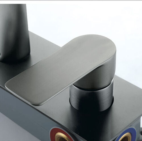 Dies ist ein schlanker, stilvoller Einbauhahn, Mischbatterie für Warm- und Kaltwasser.