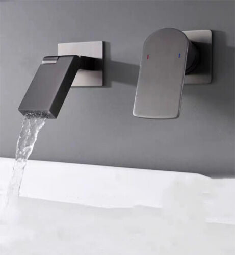 Dies ist ein schlanker, stilvoller Einbauhahn, Mischbatterie für Warm- und Kaltwasser.