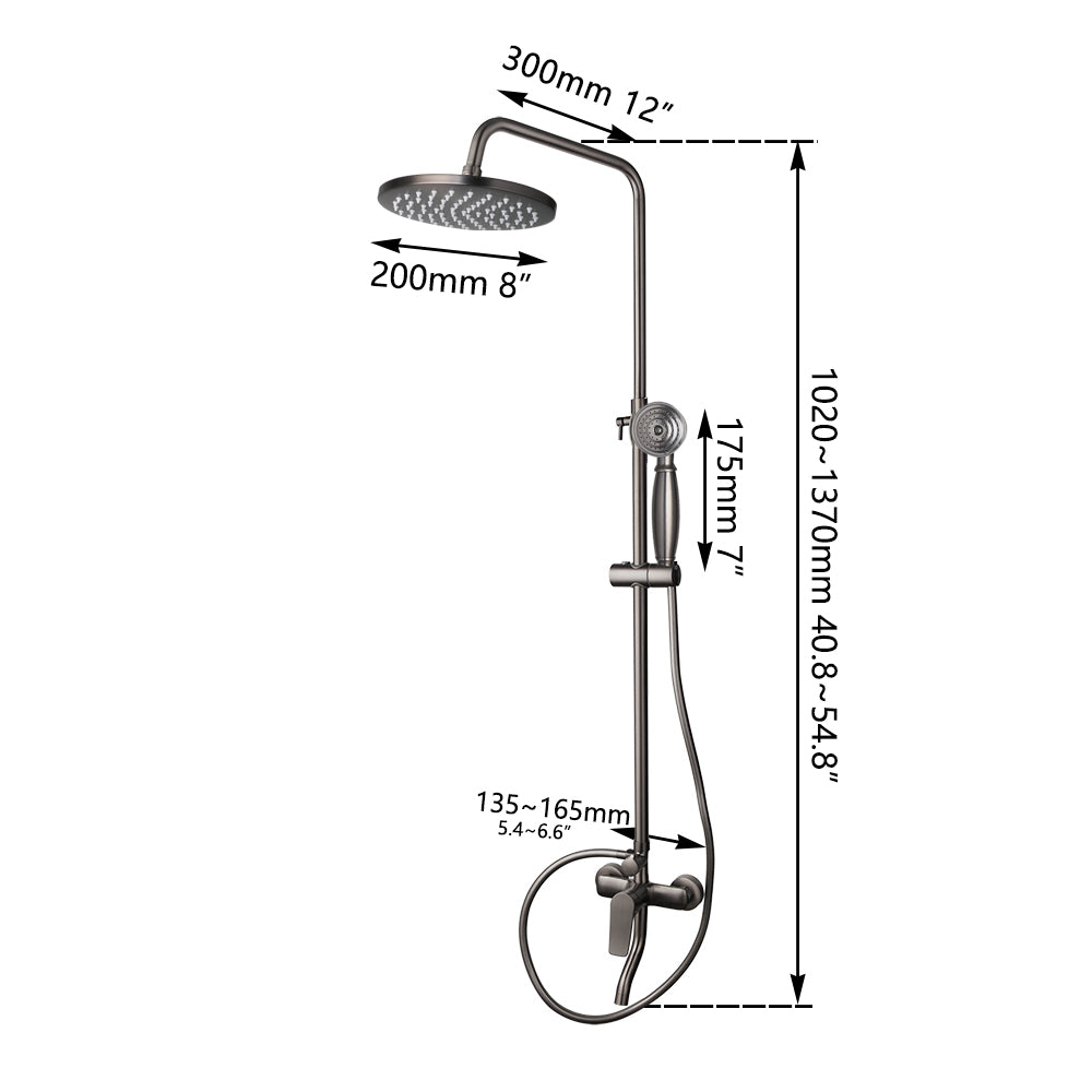 - Gesamthöhe der Gun Metal Regendusche: 1370 MM