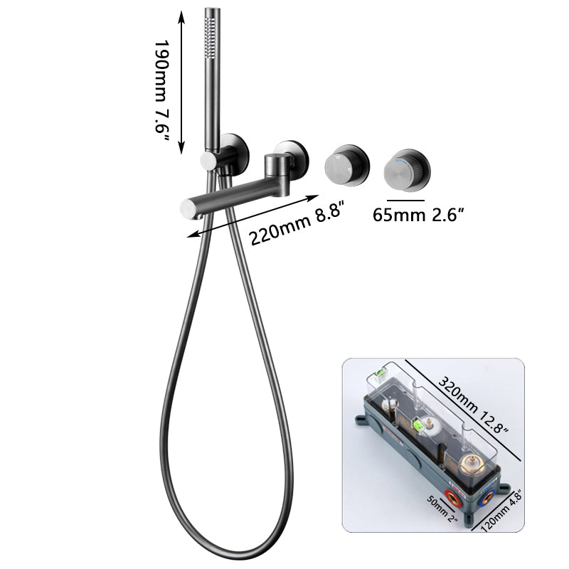 Spezifikationen des Gunmetal-Einbaubadewannen-/Duschsets: