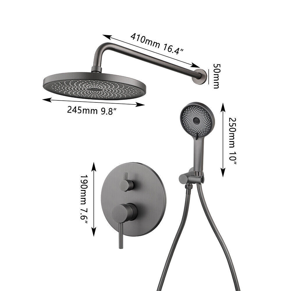 Die Spezifikationen des Gun Metal Einbau-Duschsets: