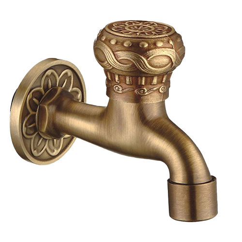 Kaltwasser-Wandhahn, bronzefarbene Oberfläche.