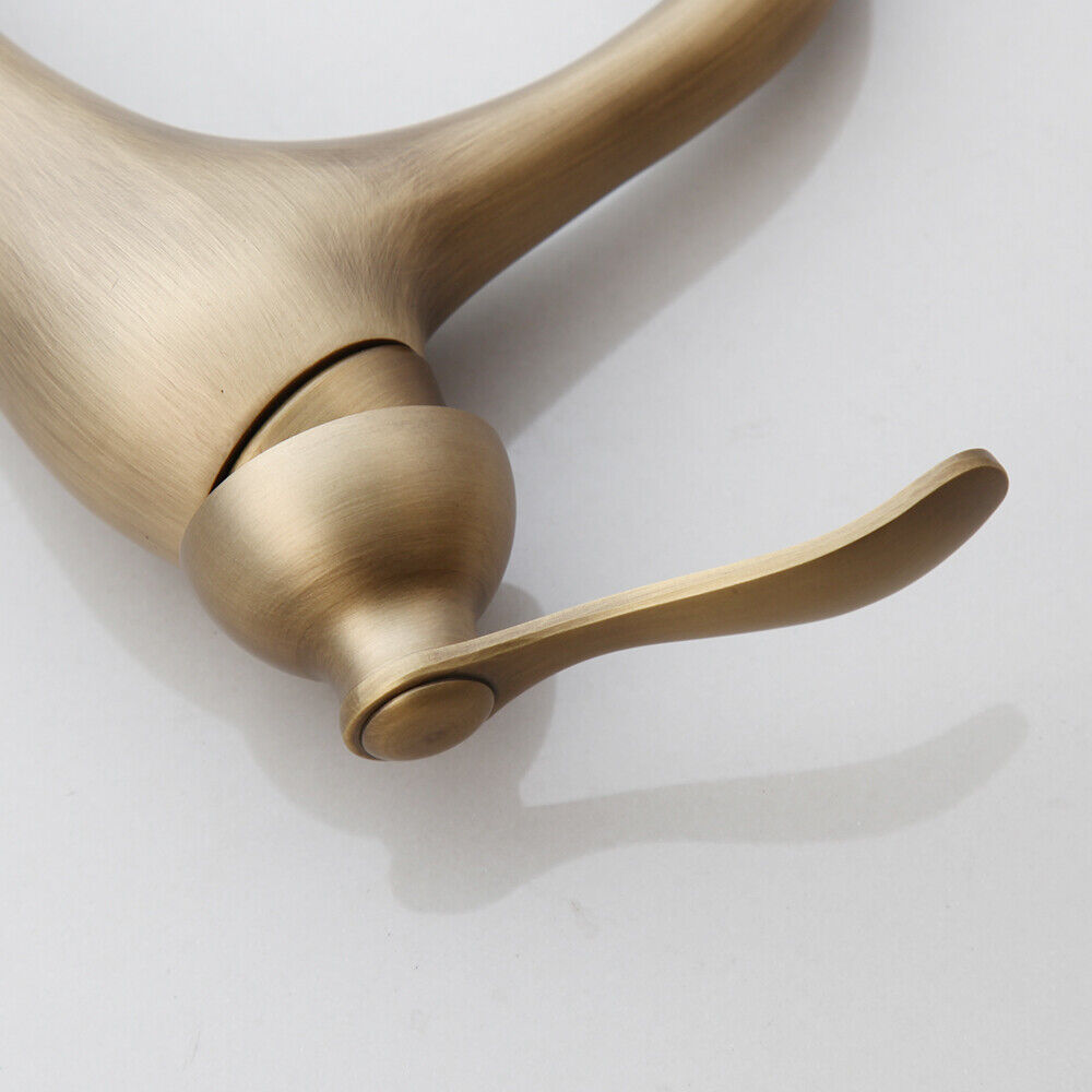 Der Wasserhahn ist sorgfältig aus massivem Messing gefertigt und mit einem bronzeähnlichen Finish versehen.
