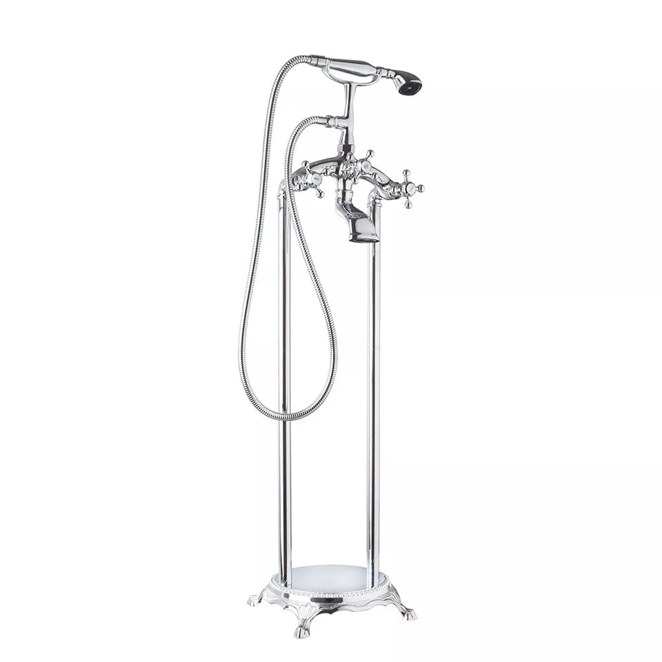 Freistehende Badewannenarmatur im Landhausstil, Chrom, mit Keramikscheiben