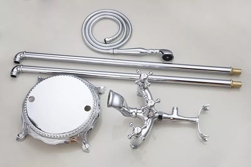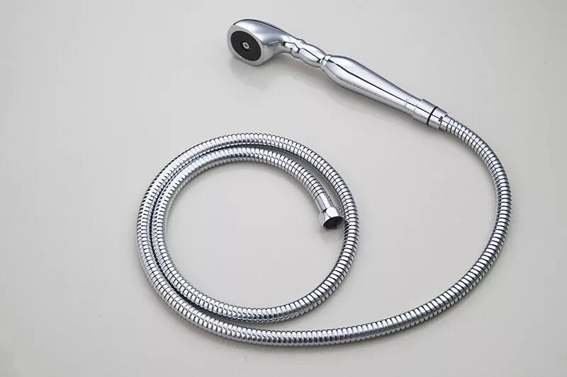 Dieser freistehende Badewannenhahn aus rustikalem Chrom vereint klassisches Design mit moderner Funktionalität. Die elegante Chromoberfläche und das nostalgische Design machen diesen Wasserhahn zur perfekten Ergänzung für Badezimmer im rustikalen oder klassischen Stil.