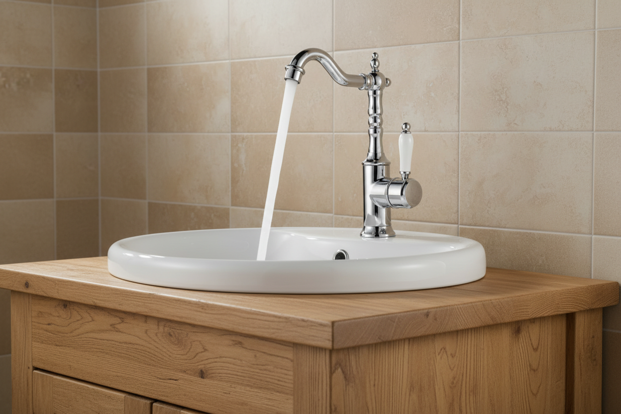 - Landelijke wastafelkraan chroom – nostalgisch model