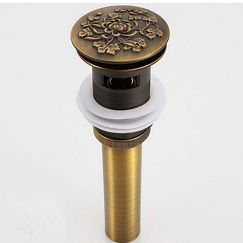 Luxuriöser bronzener Pop-Up-Ablauf, Klick-Ablauf mit Überlauf und floralem Design
