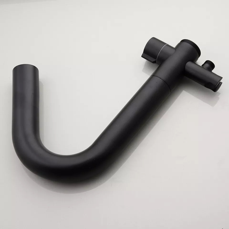 Verleihen Sie Ihrem Badezimmer mit dieser freistehenden schwarzen Badewannenarmatur einen luxuriösen und modernen Look. Das minimalistische und industrielle Design, kombiniert mit der mattschwarzen Oberfläche, macht diese Armatur zu einem echten Hingucker in jedem Badezimmer. Die hochwertigen Materialien und die langlebige Oberfläche sorgen dafür, dass diese Armatur jahrelang hält, ohne an Stil oder Funktionalität einzubüßen.