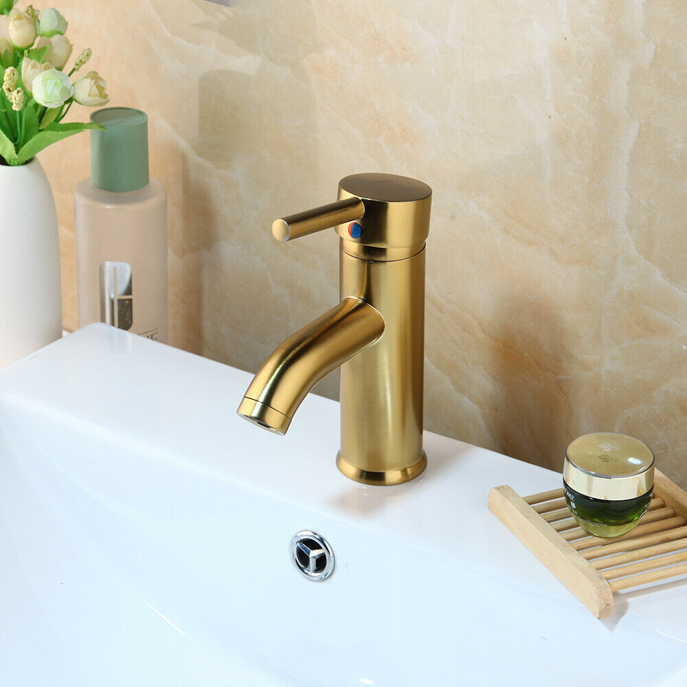 Mattgoldene Waschtischarmatur mit Einhebelbedienung für Warm und Kalt.