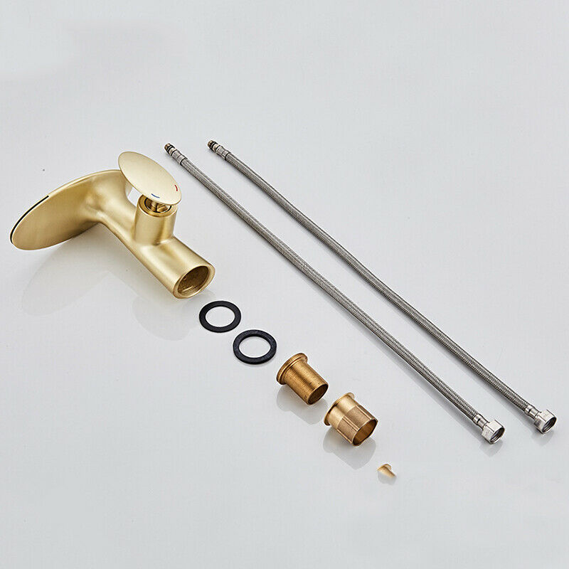 - Der elegante Wasserhahn in Mattgold wird inklusive sämtlichem Anschlusszubehör geliefert.