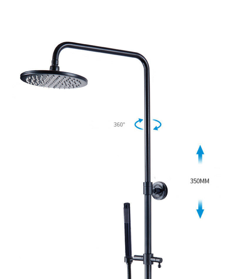 - Gesamthöhe des Duschsets: 95 – 130 cm (Sie können das Set in der Höhe anpassen, indem Sie das obere Rohr während der Installation weiter in das untere Rohr drücken).