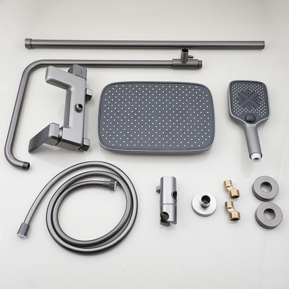 - Die moderne Regendusche aus Gun Metal mit Badewannenarmatur wird mit einer 12-monatigen Garantie geliefert