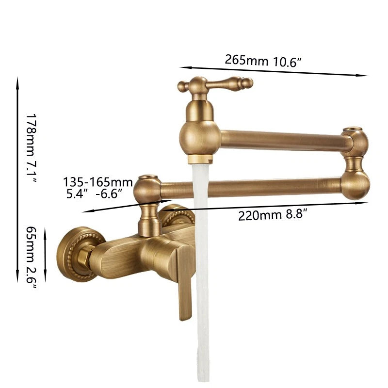 Dieser bronzefarbene Wandmischer mit Einhebelbedienung verleiht jedem Badezimmer oder jeder Küche einen warmen, rustikalen Look. Der doppelgelenkige (klappbare) Auslauf bietet ausreichend Reichweite und Funktionalität, während die massive Messing- und Bronzeoberfläche für einen zeitlosen Look sorgt.