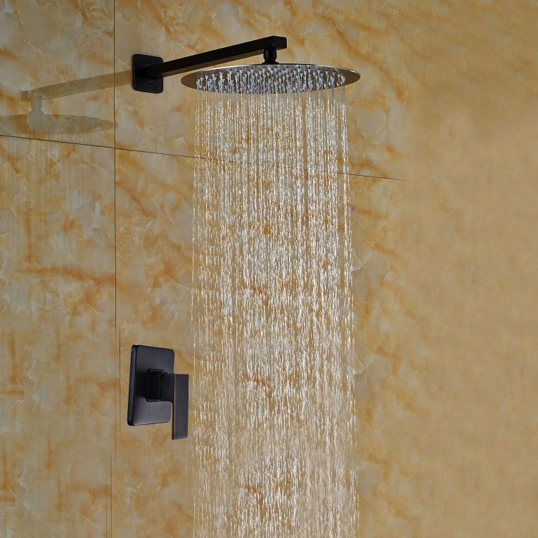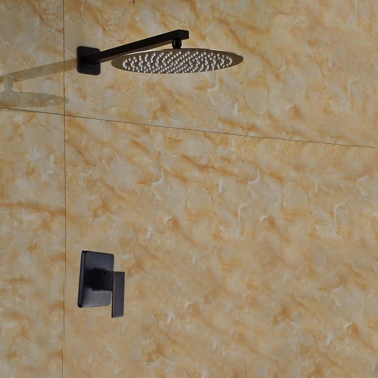 Nostalgische Einbau-Regendusche aus Ölbronze mit rundem 20 cm Duschkopf.