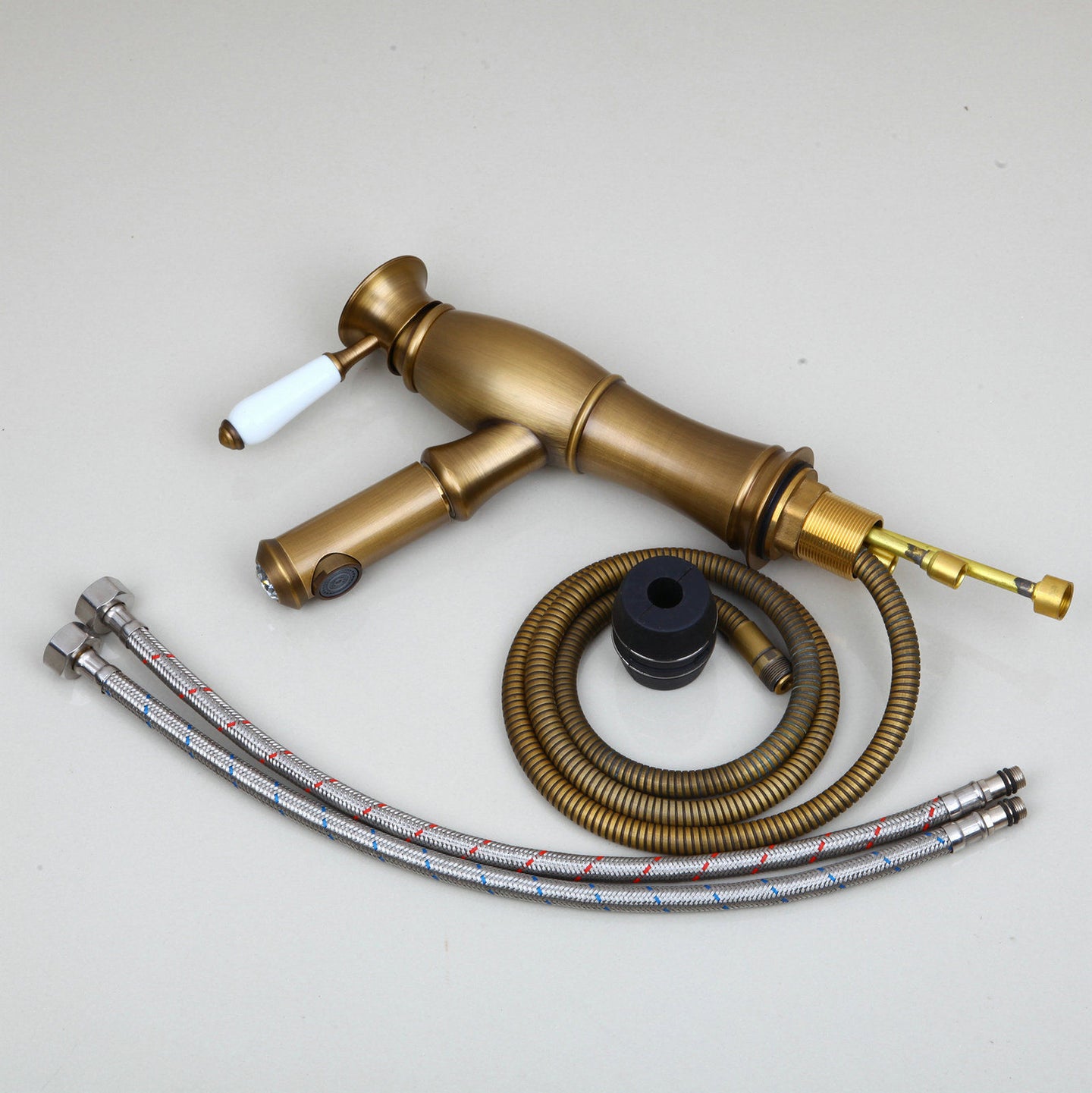 Nostalgische Waschtischarmatur, klassisches Modell, Bronze-Finish, ausziehbar
