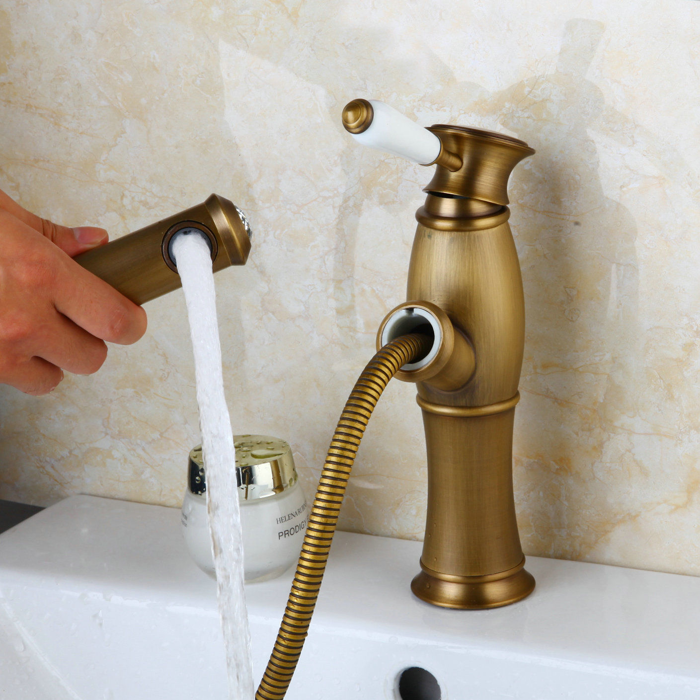 Wunderschöner Waschtischhahn im klassischen Modell mit Bronze-Finish und ausziehbarem Sprühkopf.