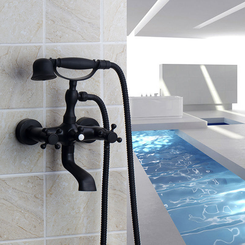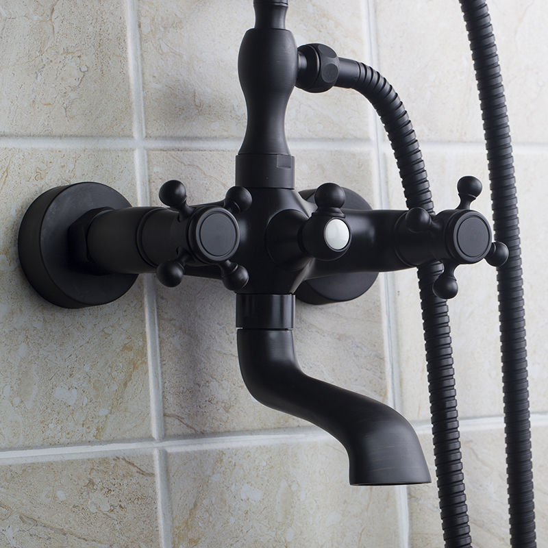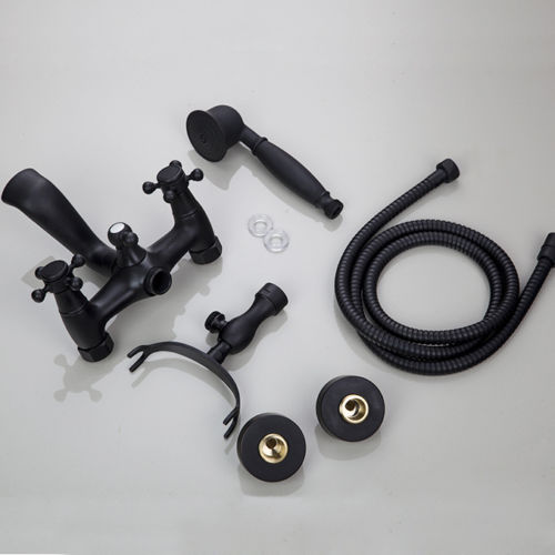 Badewannenarmatur aus Ölbronze, die mit der Methode der geriebenen Ölbronze dunkel lackiert wurde.