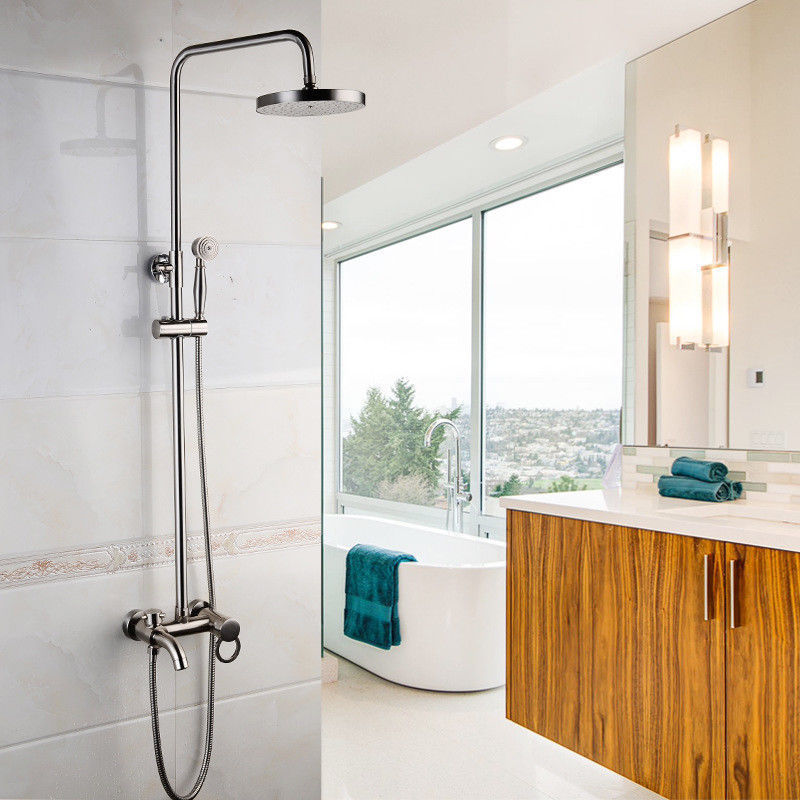 Das Duschset aus gebürstetem Nickel ist aus langlebigem Messing gefertigt.