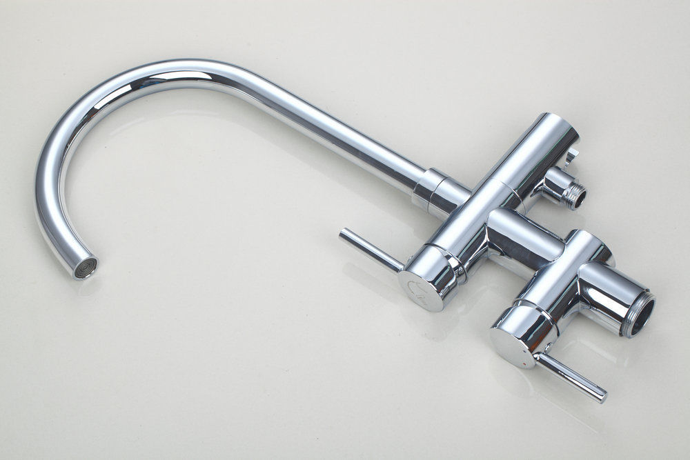 Es handelt sich um einen Wasserhahn aus massivem Messing mit einer eleganten Chromoberfläche.