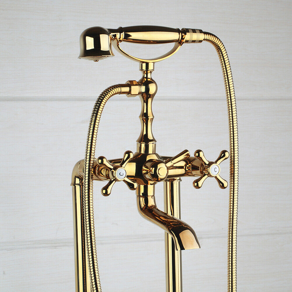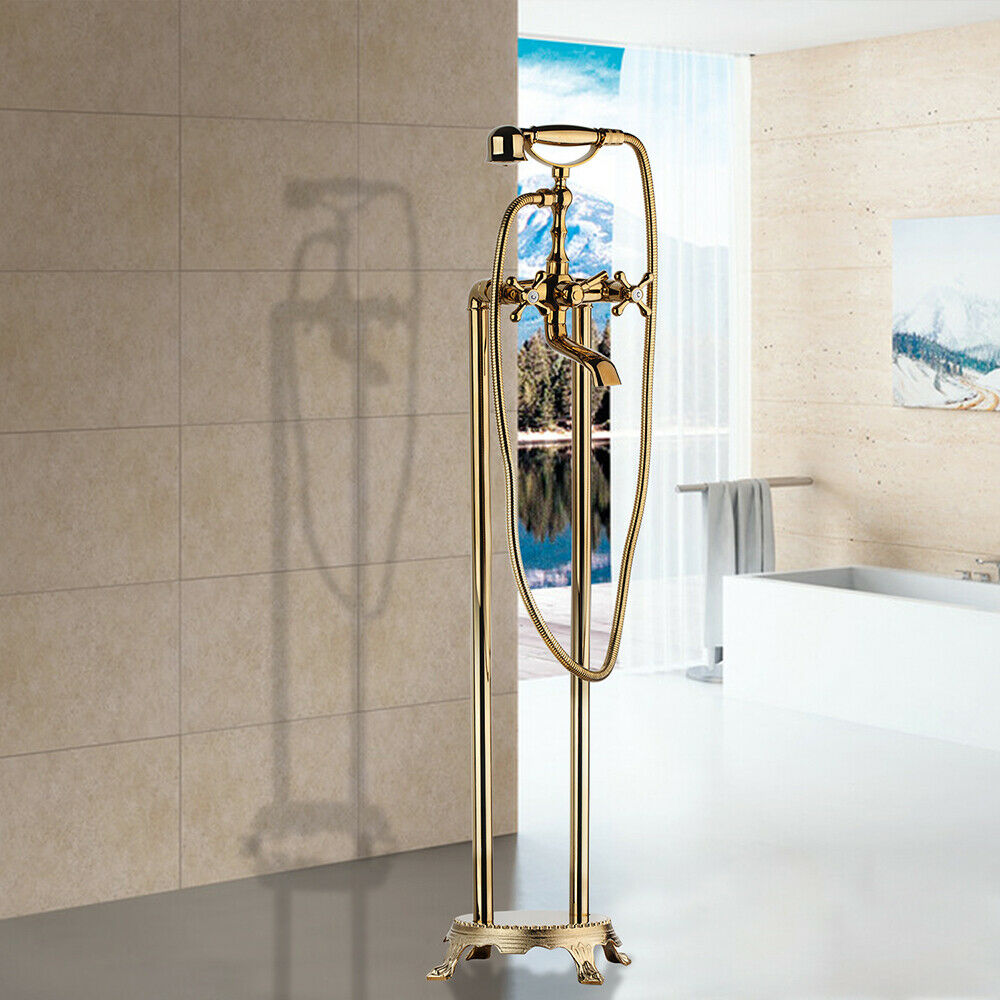 Dieser freistehende goldene Badewannenhahn ist eine willkommene Ergänzung für Ihr Badezimmer.