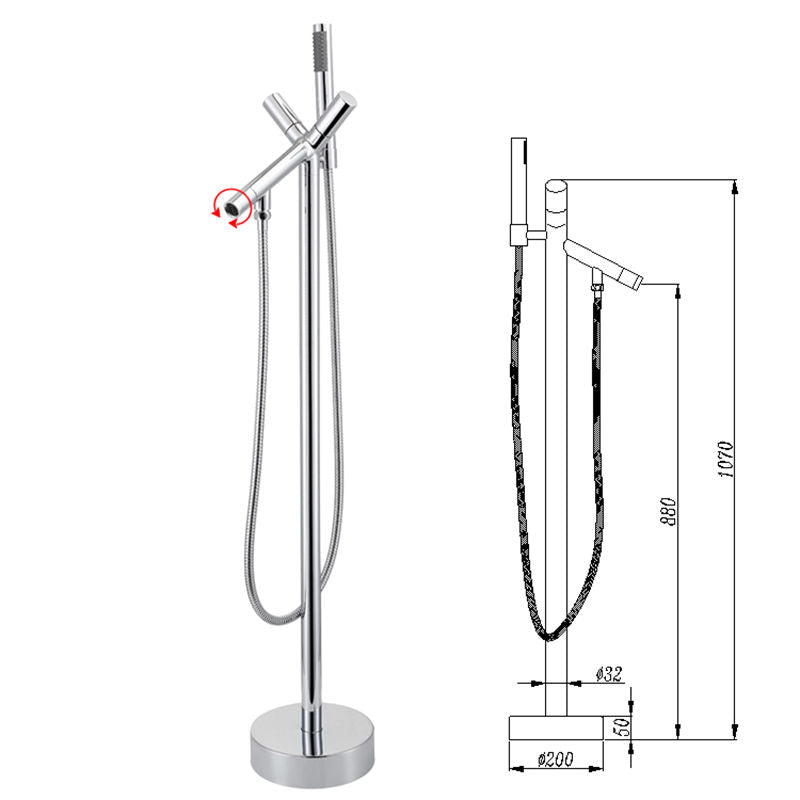 - Dies ist ein freistehender Badewannenhahn, den Sie durch den Boden anschließen müssen. (Fragen Sie zunächst Ihren Installateur, ob Ihr Badezimmer für diesen Hahntyp geeignet ist.)