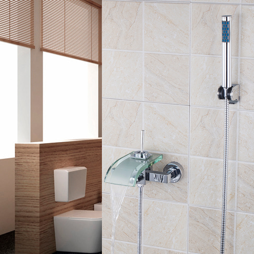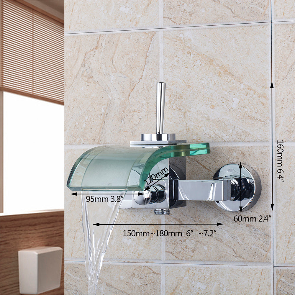 Schöner, schlanker und eleganter Wasserfall-Badewannenhahn mit Chrom- und Glasoberfläche: