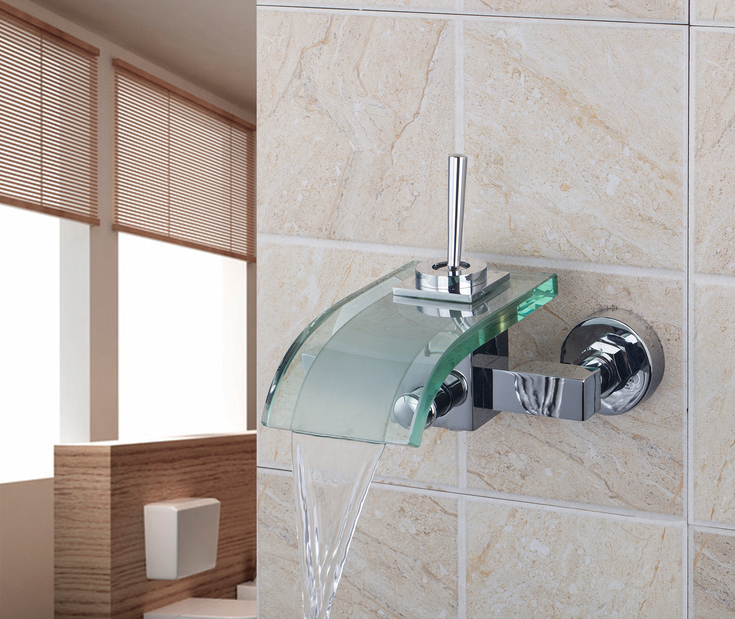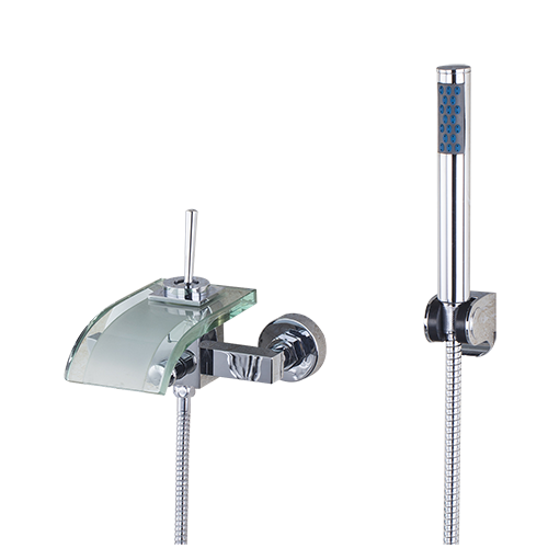 - Wasserfall-Badewannenarmatur mit Glasmündung