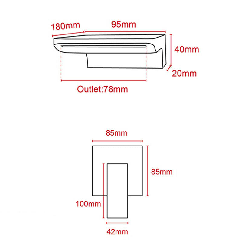 - Breite des Auslasses (am Wasserfall): 78 MM