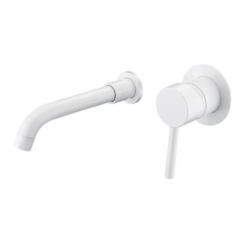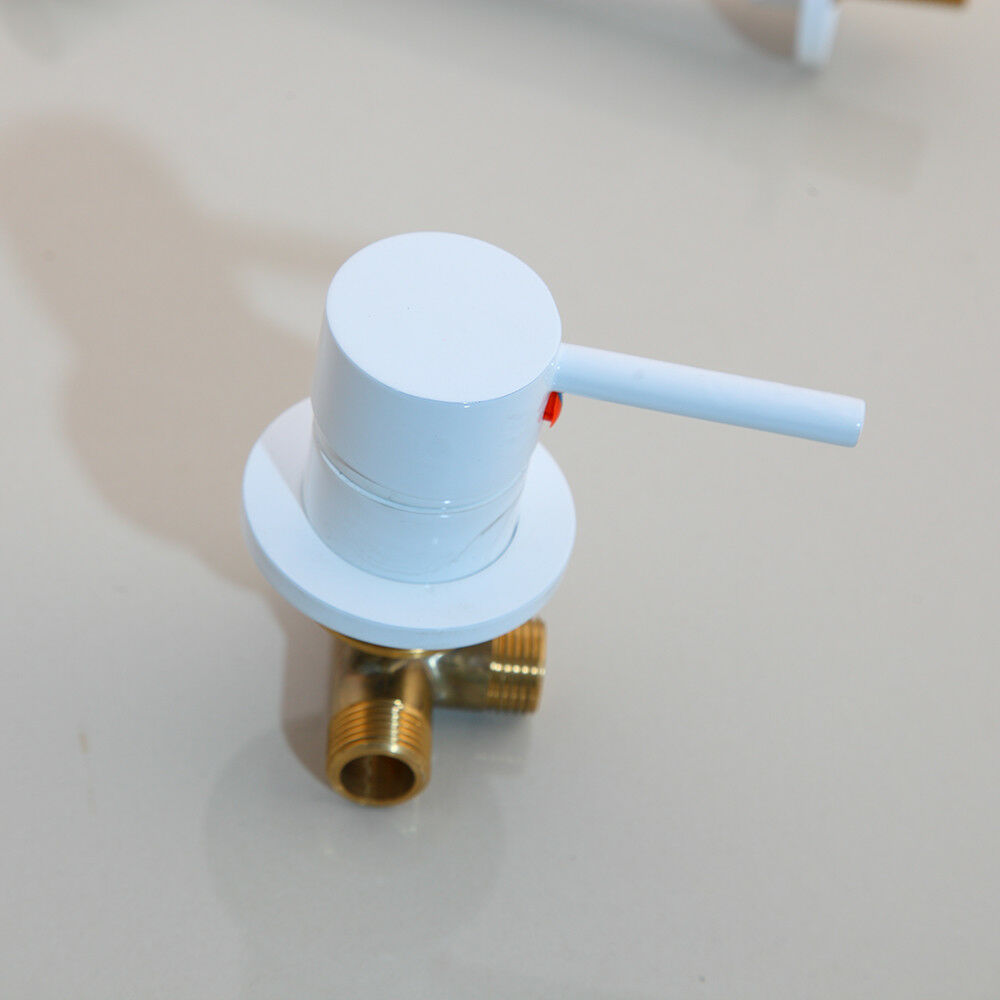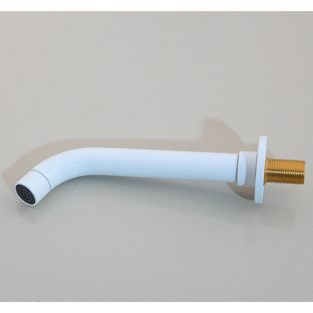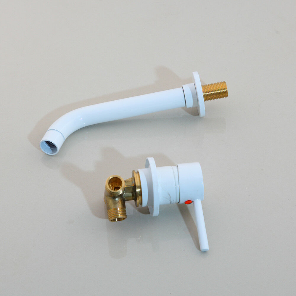 Dieser weiße Wandhahn ist ein Warm- und Kaltwassermodell und verfügt über eine bequeme Einhandbedienung.