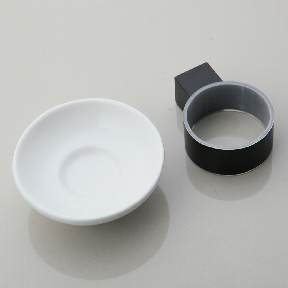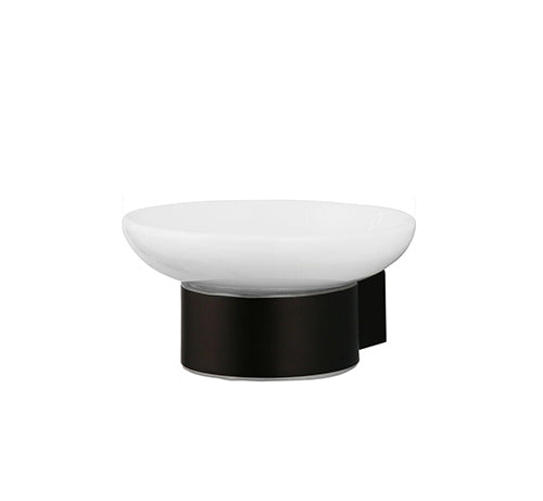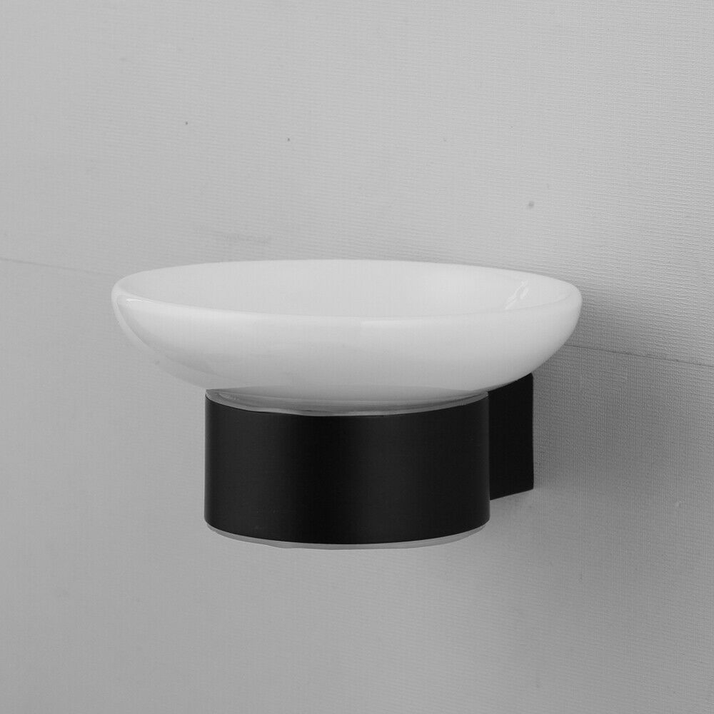 Mattschwarze Seifenschale mit elegantem weißen Unterteller. Diese schwarze Seifenschale befestigen Sie an der Wand.