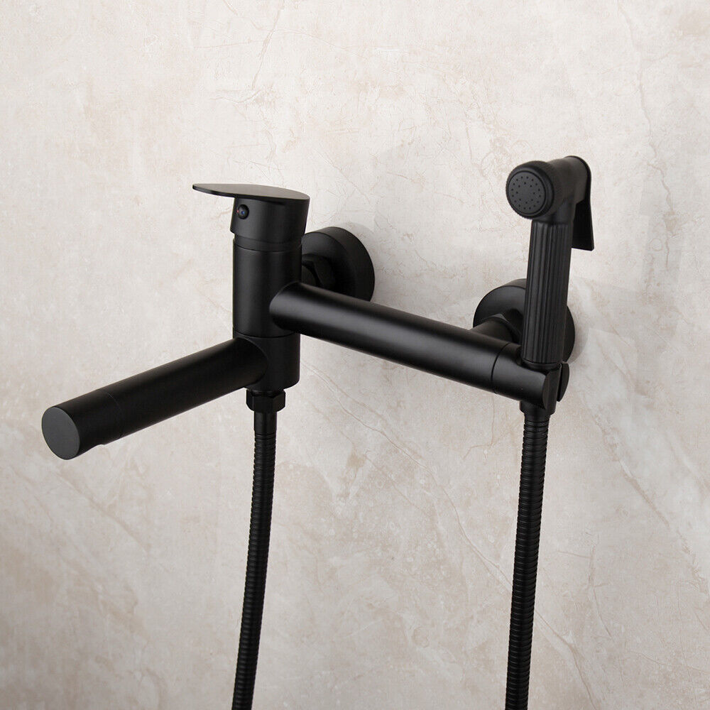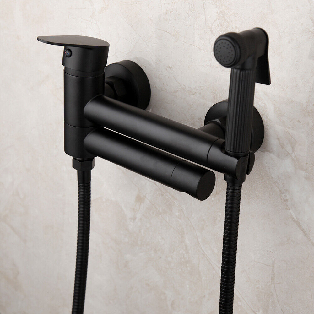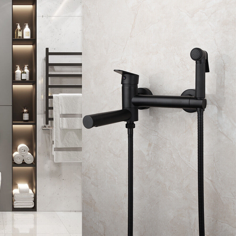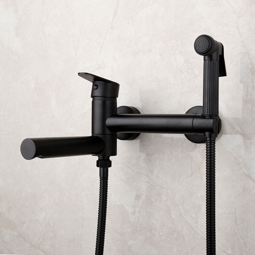 Schwarzer Badewannenhahn mit Bidetbrause-Mischbatterie
