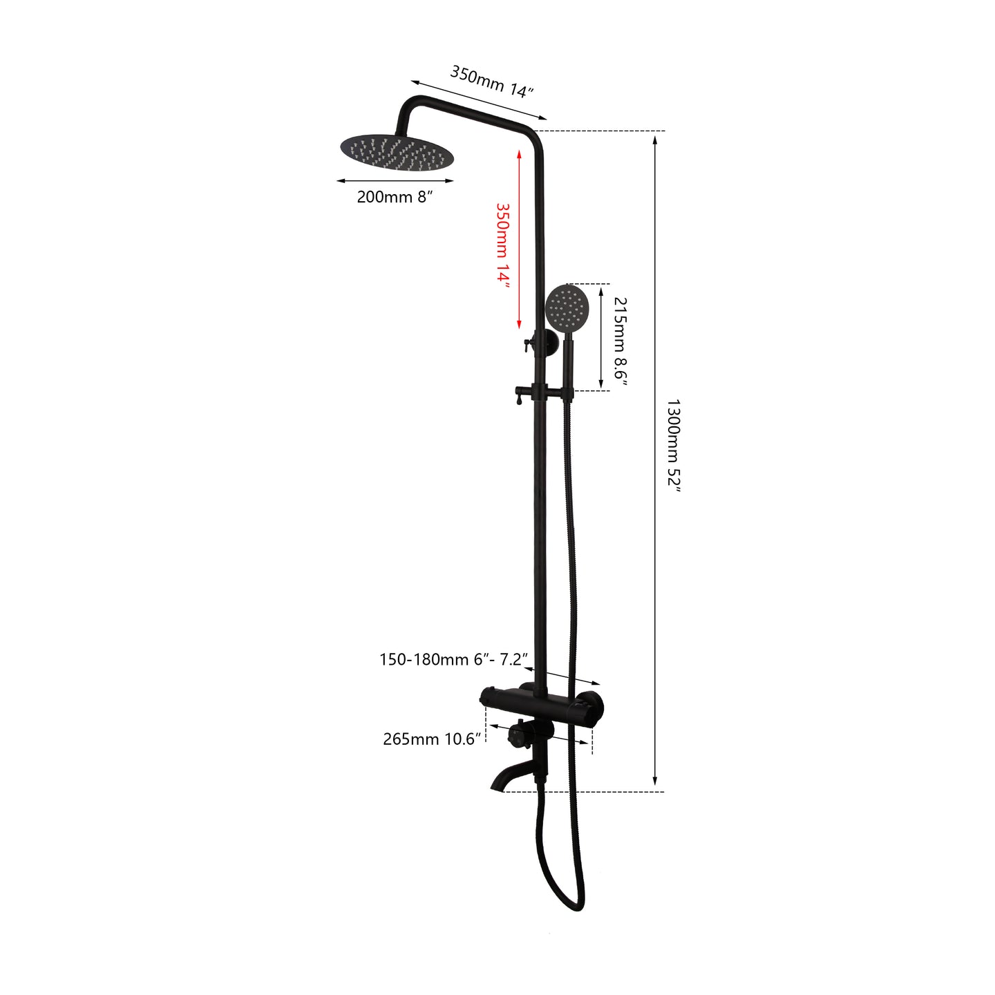 - Höhe des schwarzen Thermostat-Duschsets: 130 cm
